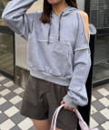ショルダー部分にスリットを入れ、ハトメディテールでアクセントを効かせたプルオーバーパーカー。