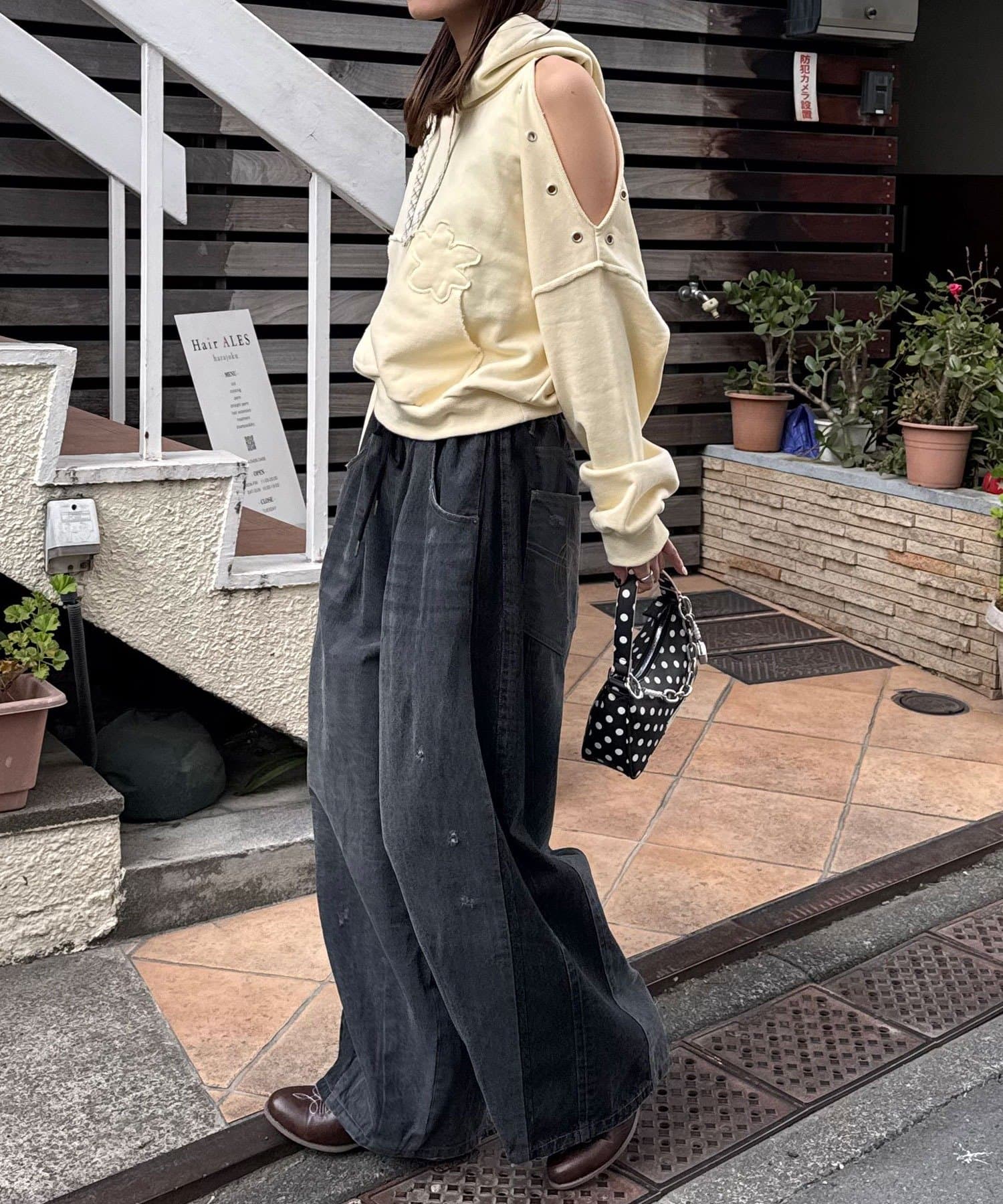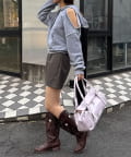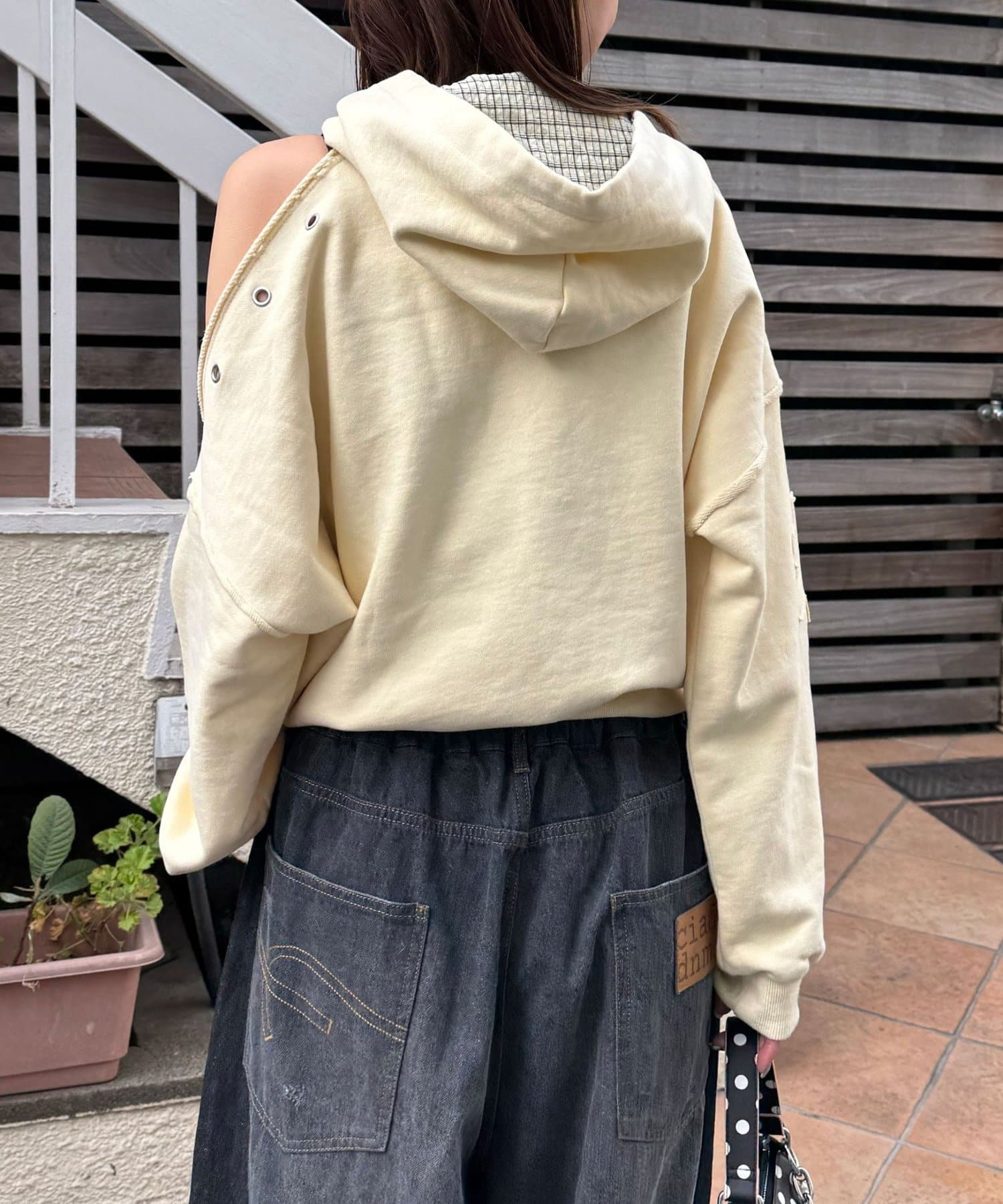 インナーにキャミやタンクを仕込んで、ショルダースリットをさりげなく見せても◎