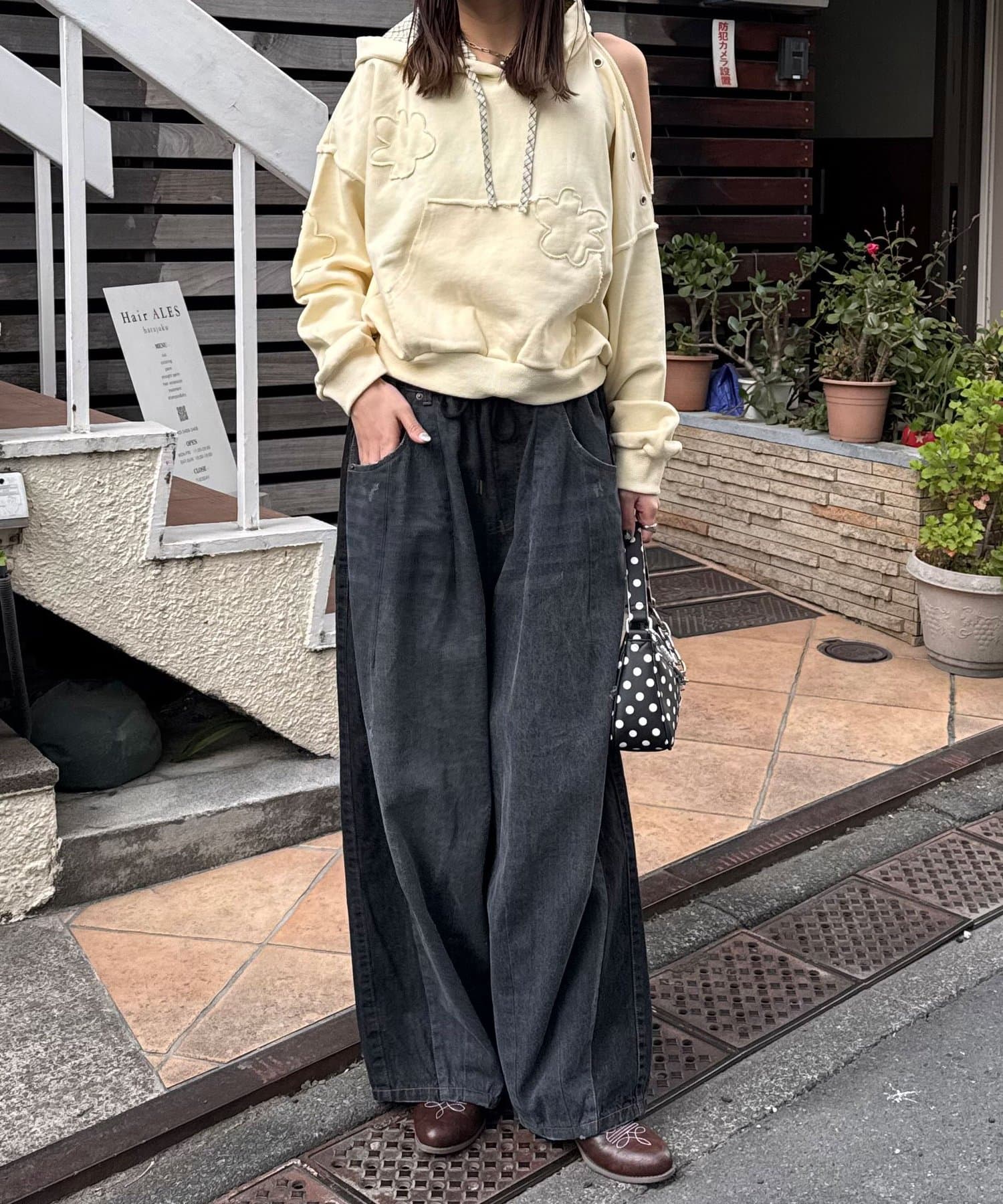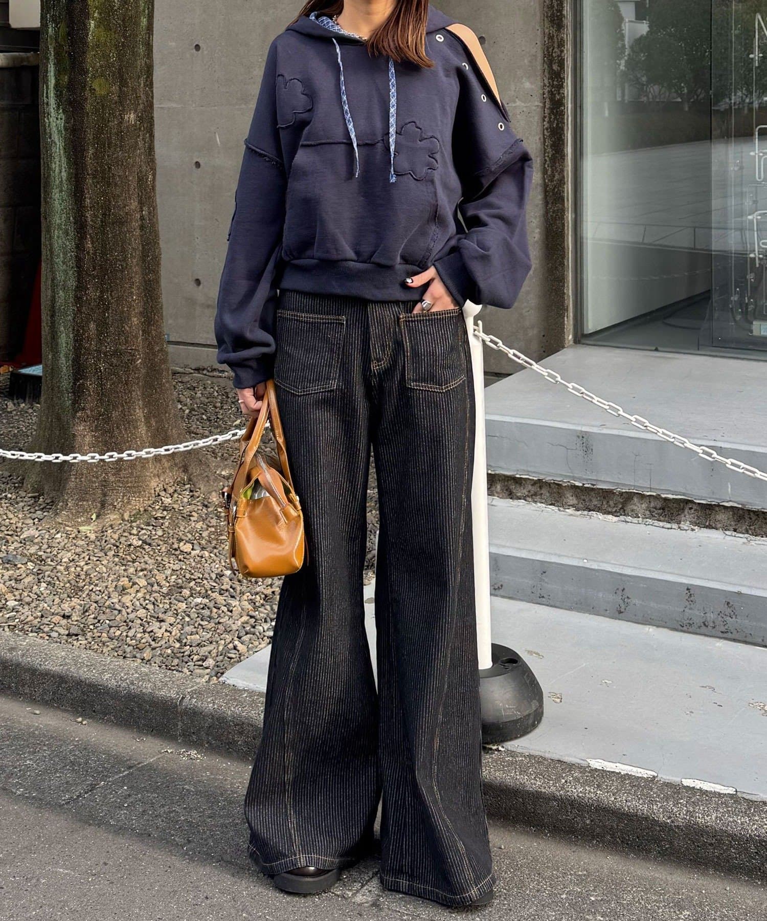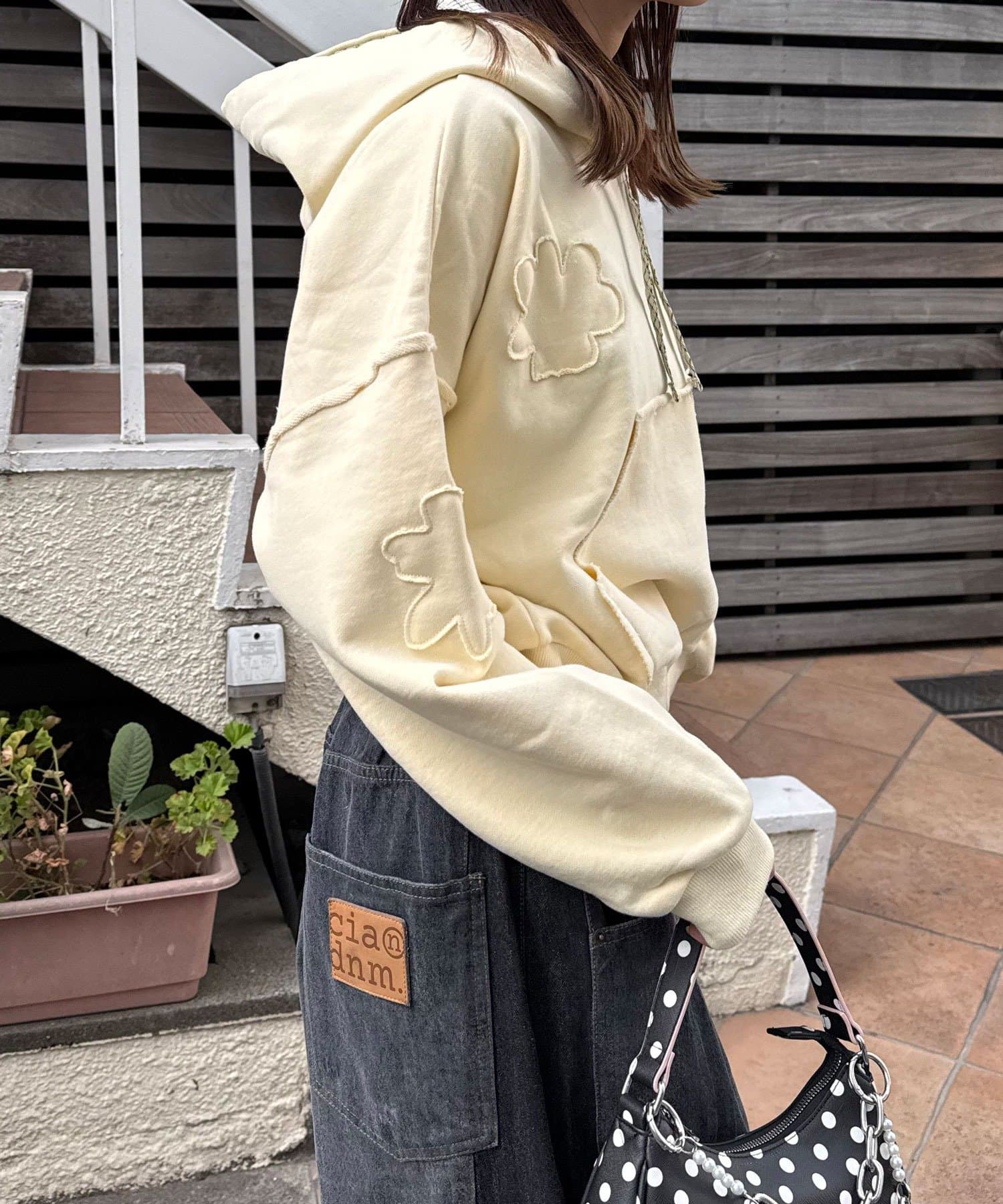 立体感のあるフラワーワッペンがシンプルすぎず、1枚でスタイリングが完成するデザインです。