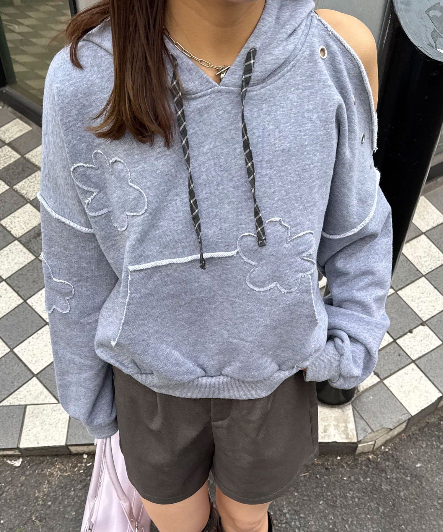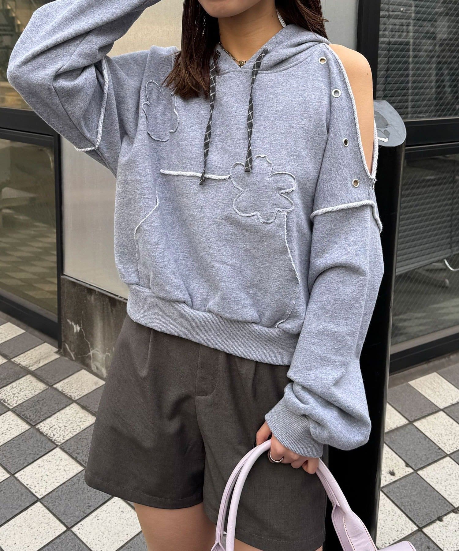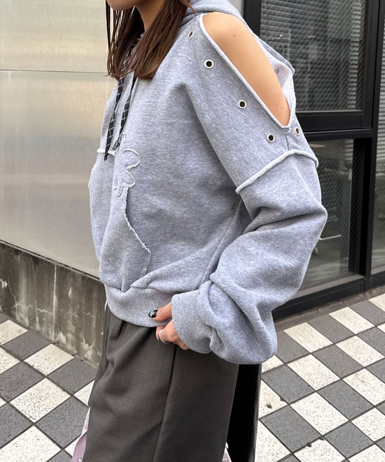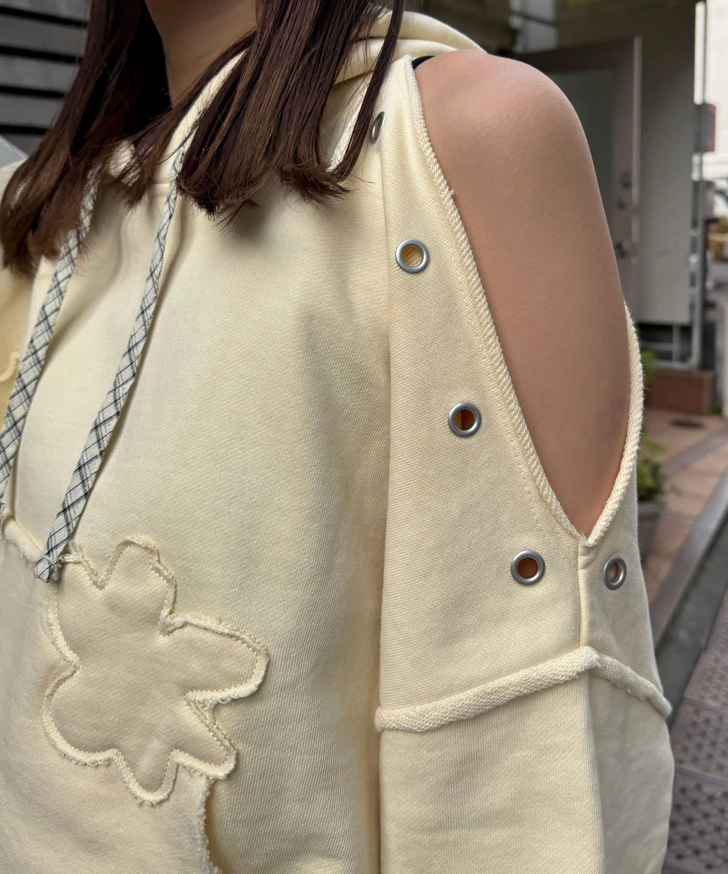 ショルダースリットハトメワッペンパーカー