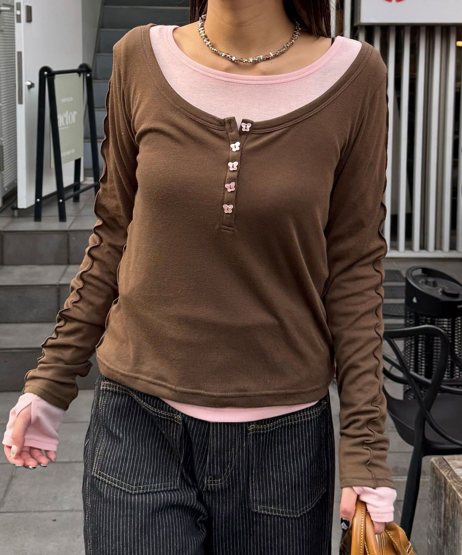 蝶々がアクセントなレイヤードトップス