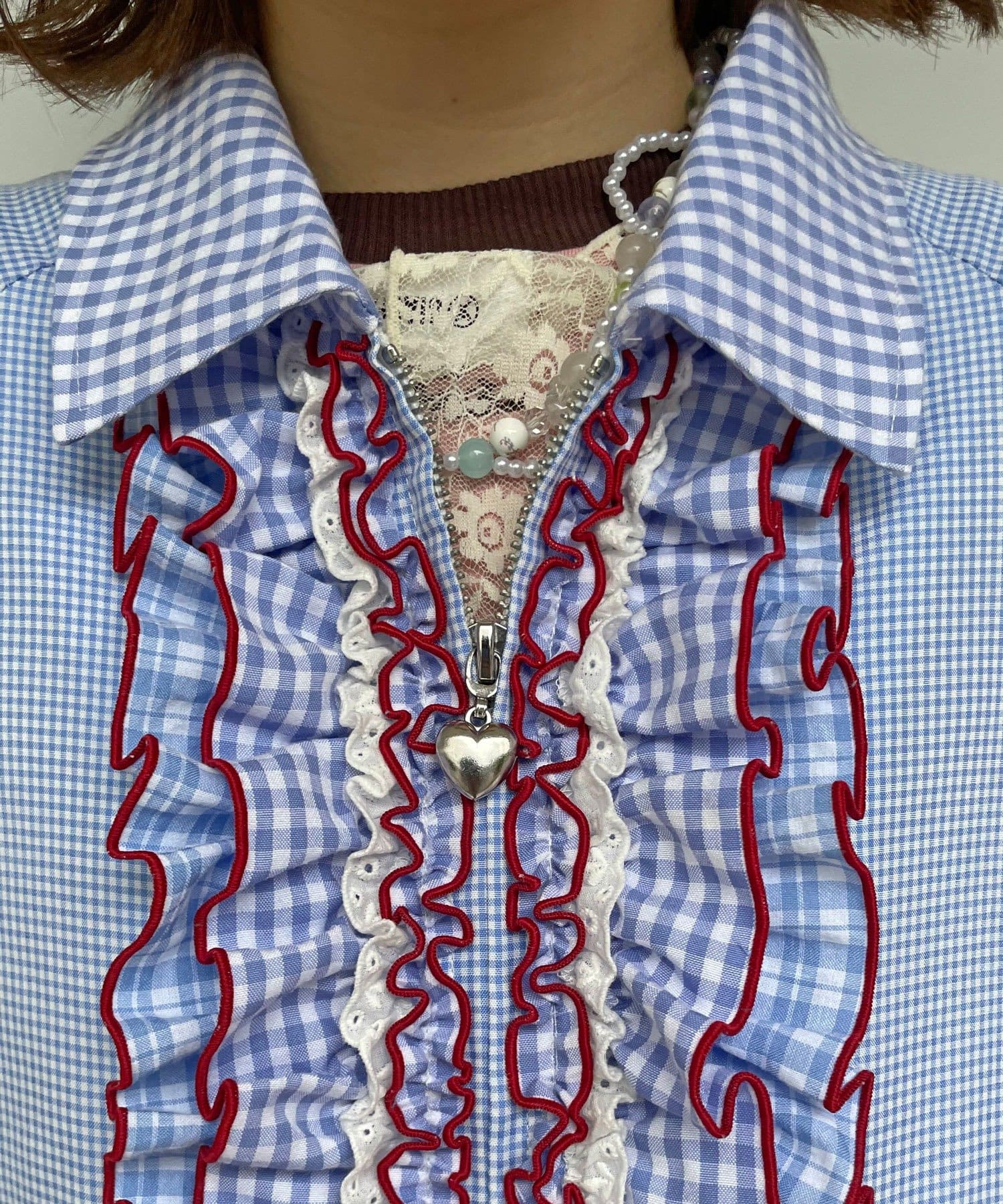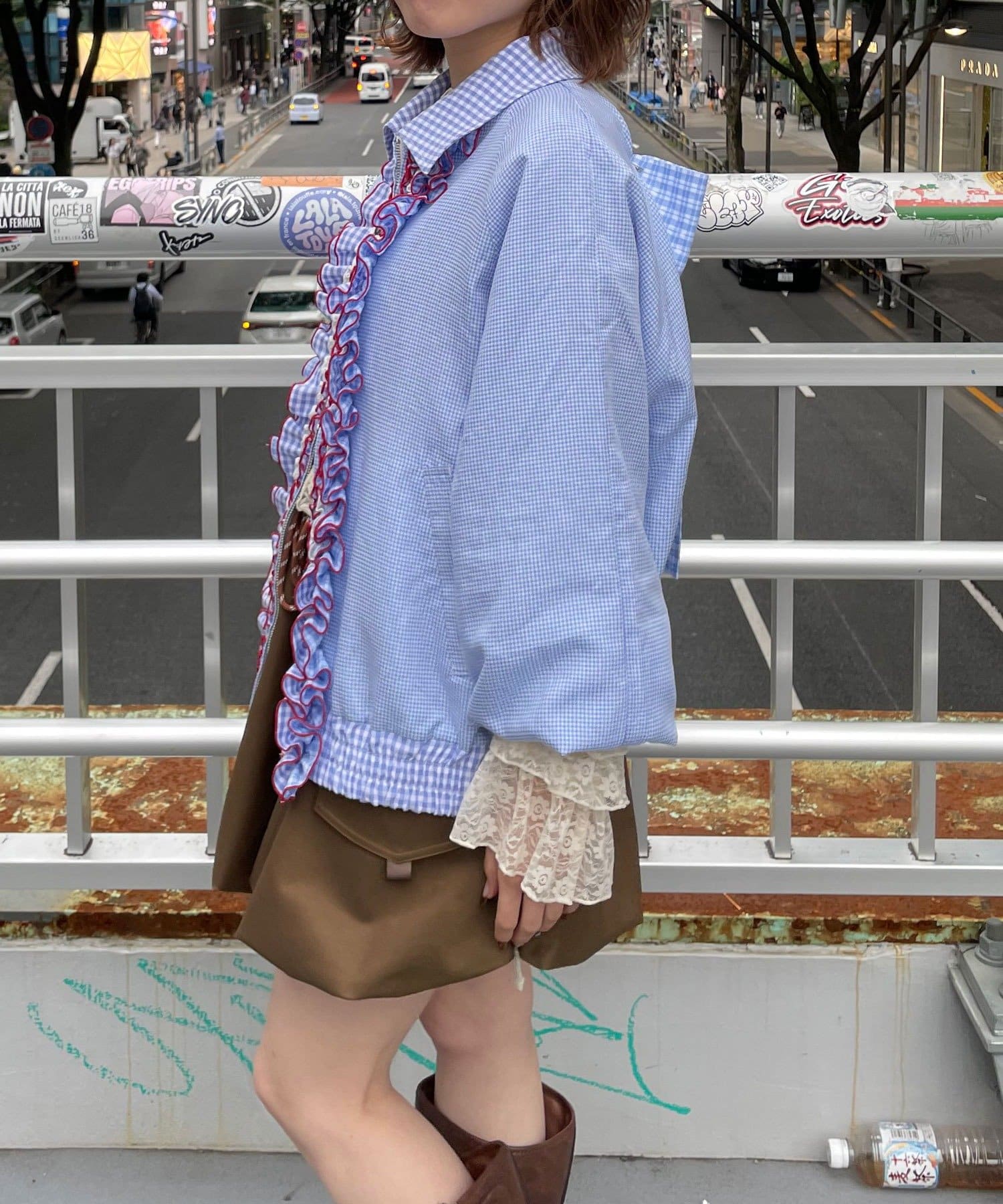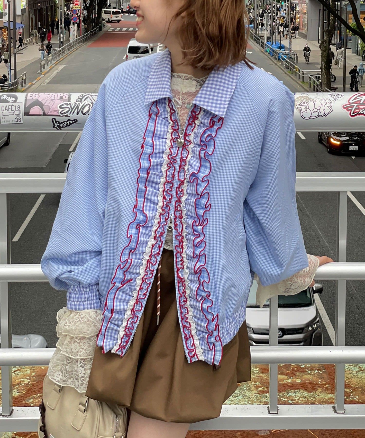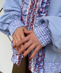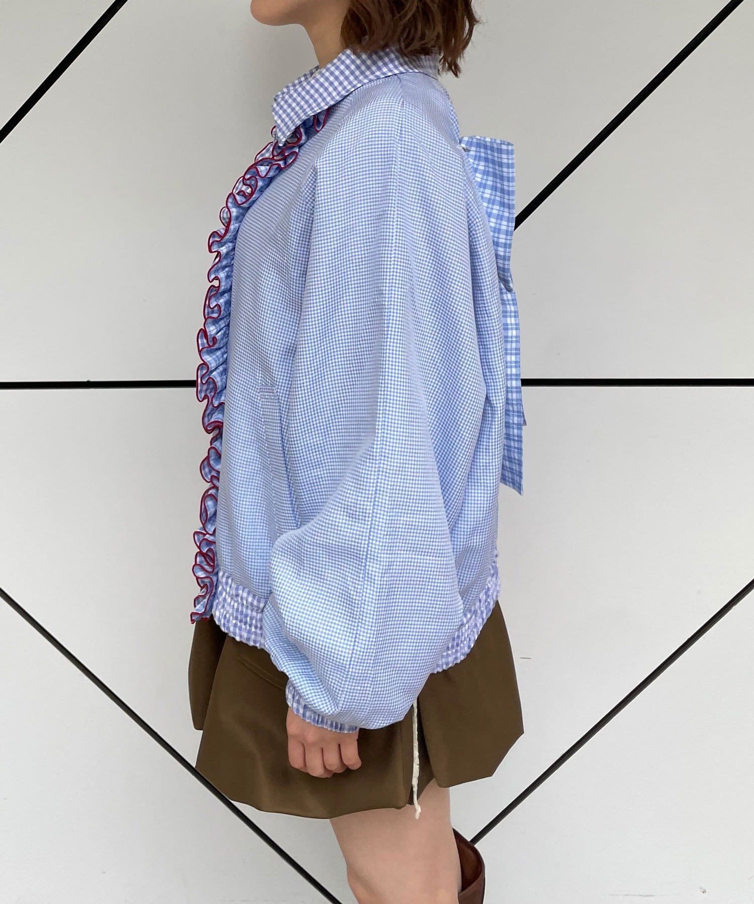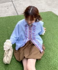メローデザインがポイントの個性的でかわいいシャツなので、羽織るだけでコーデが華やかに。