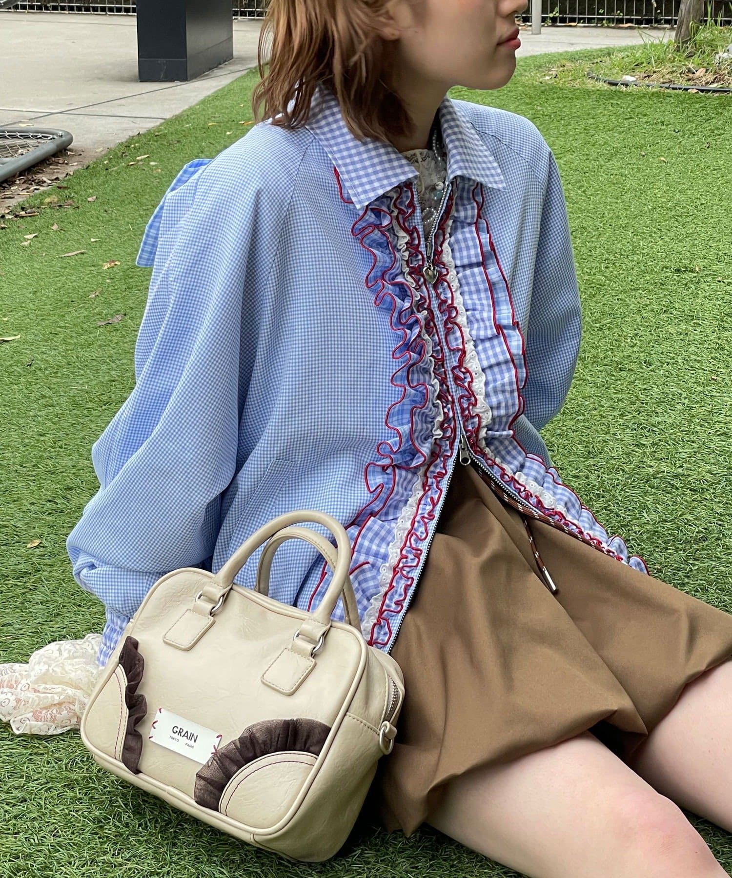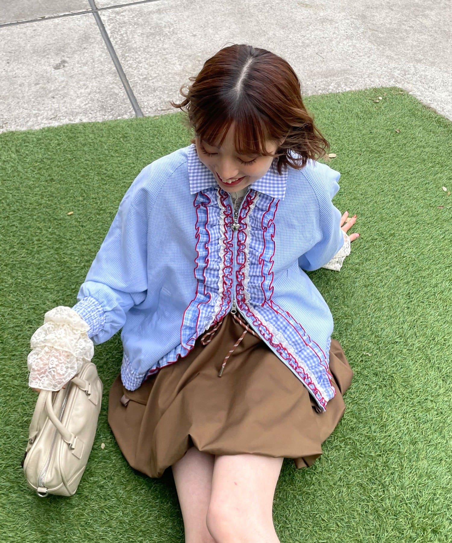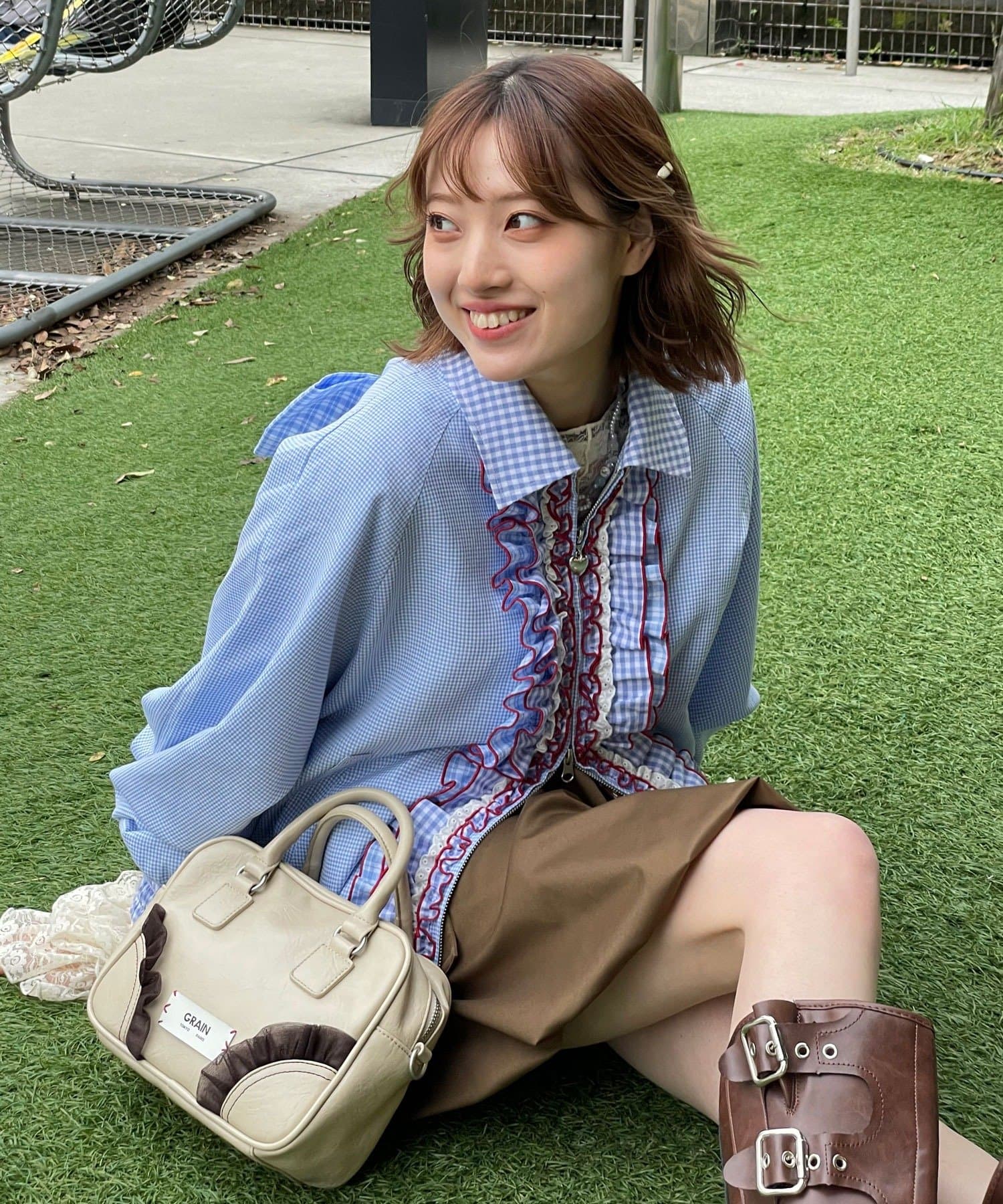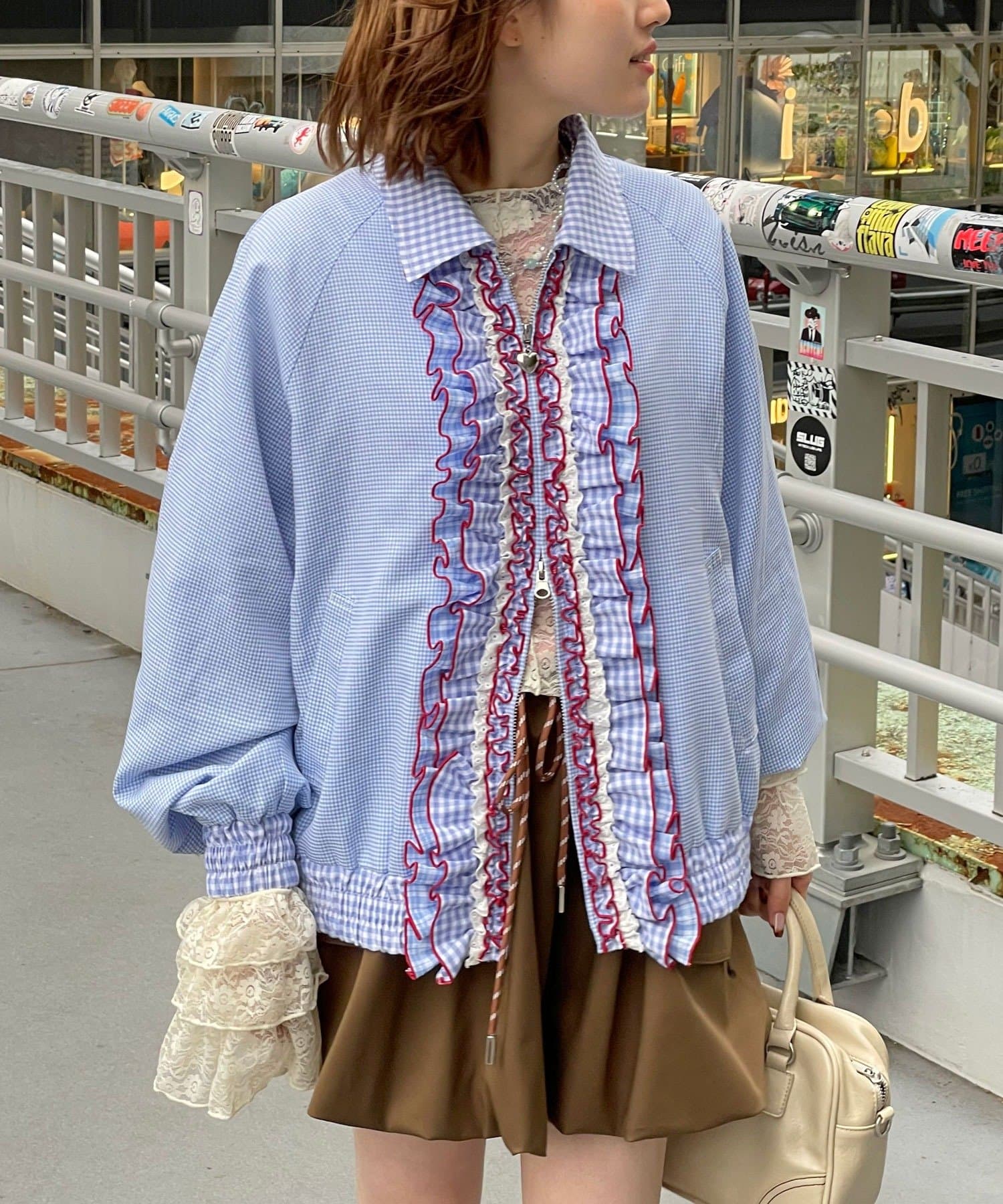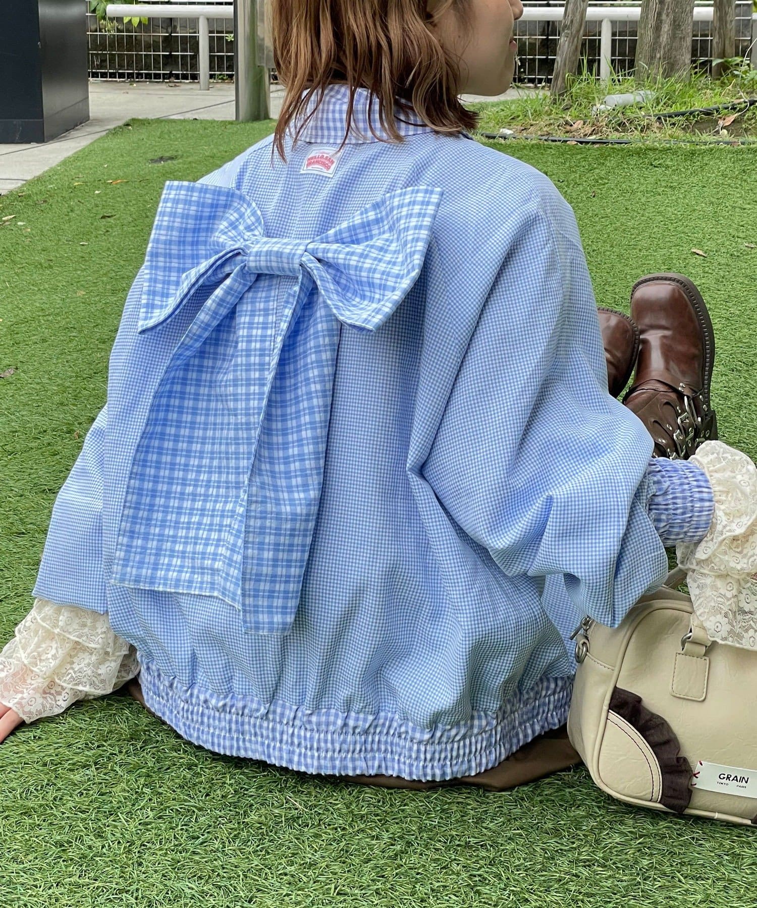 【Ciaopanic】【aya】HSリボン付きチェックブルゾン