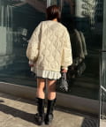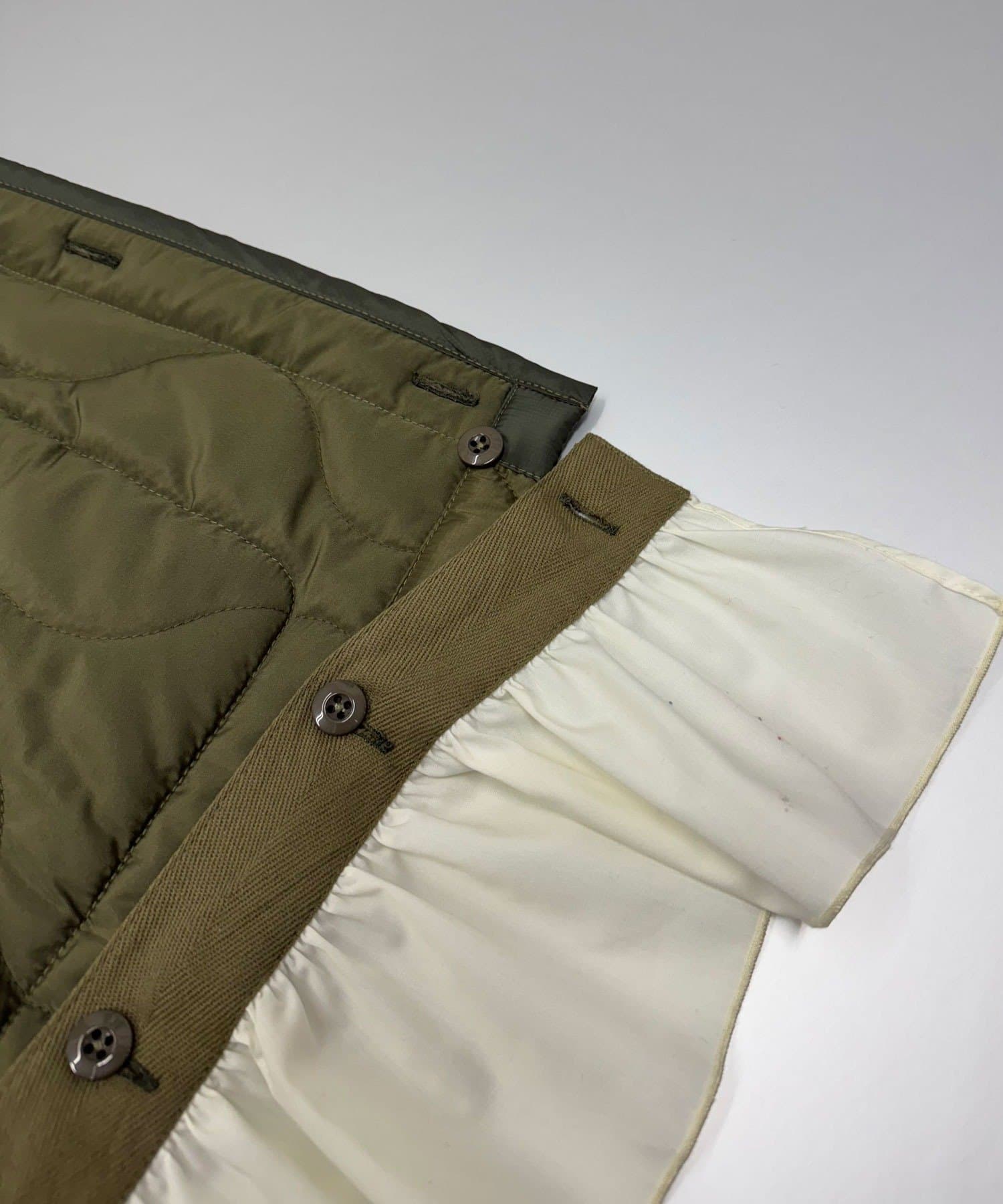 ミリタリーライナーをベースに、フリルをレイヤードしたデザインが目を惹くキルティングジャケット。