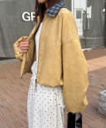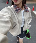 チェック柄の襟がアクセントになったショートブルゾン。