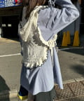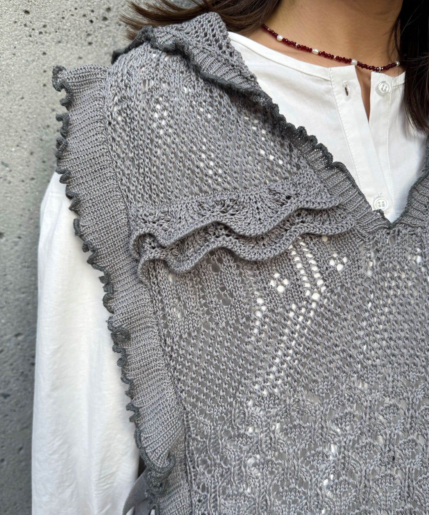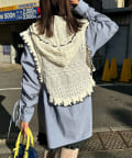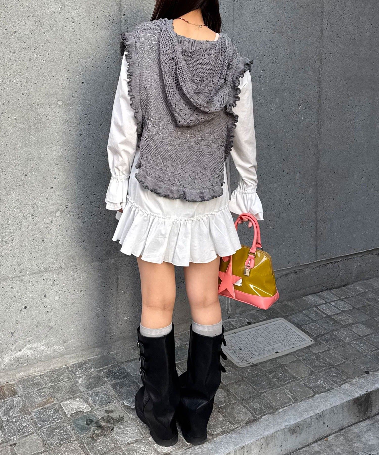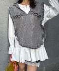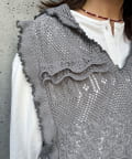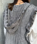どんなトップスにも重ねやすいフード付きニットベスト。