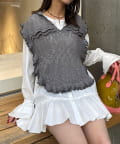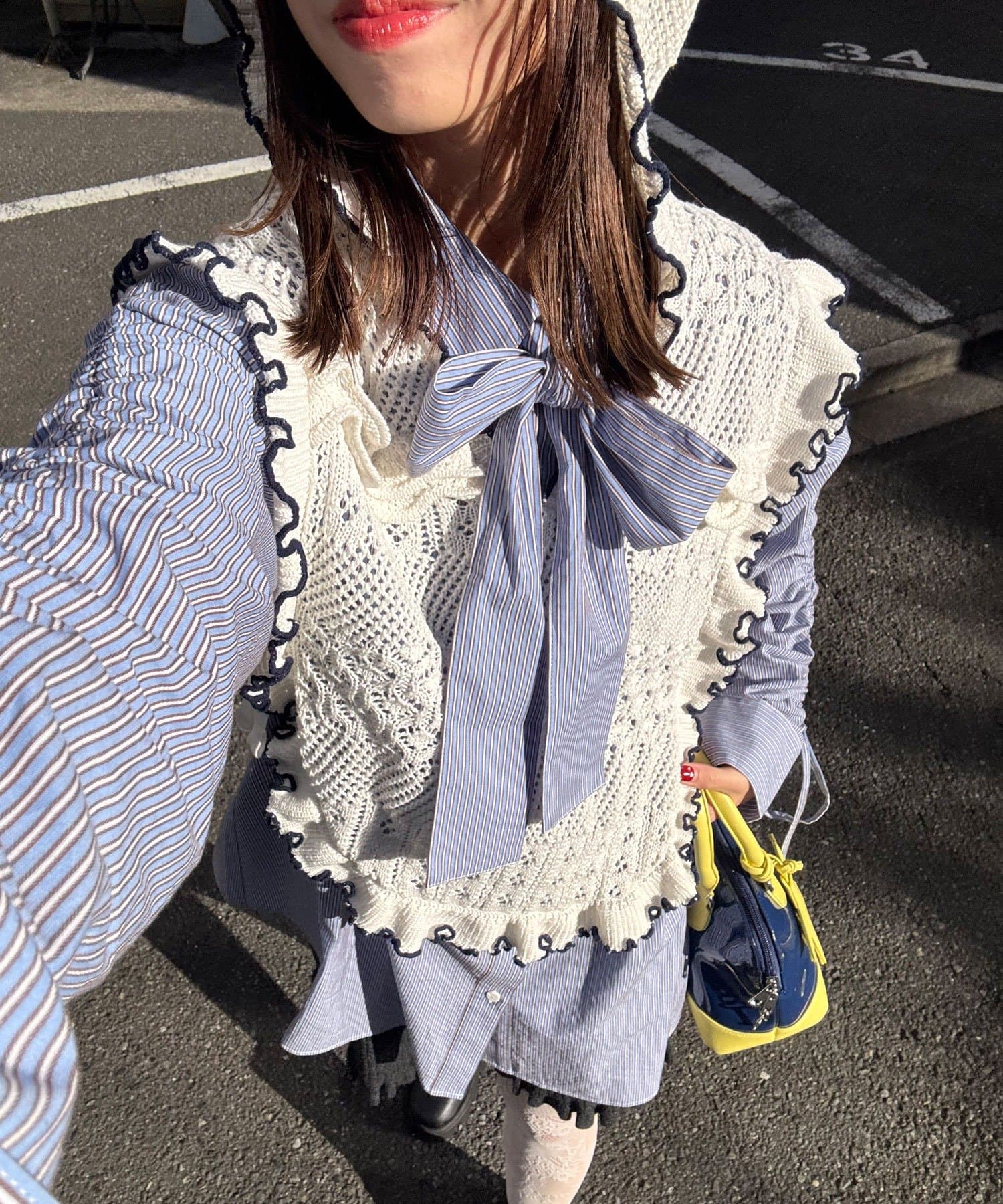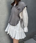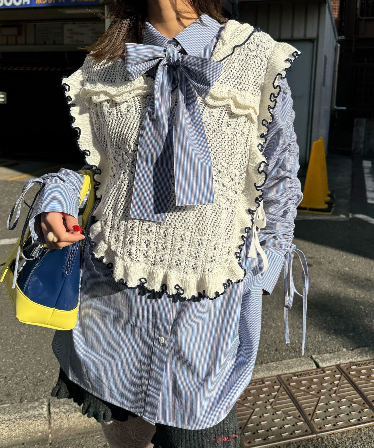 サイドのリボンで身幅を調節でき、フリル×メローの縁取りがコーデにさりげない甘さをプラス。