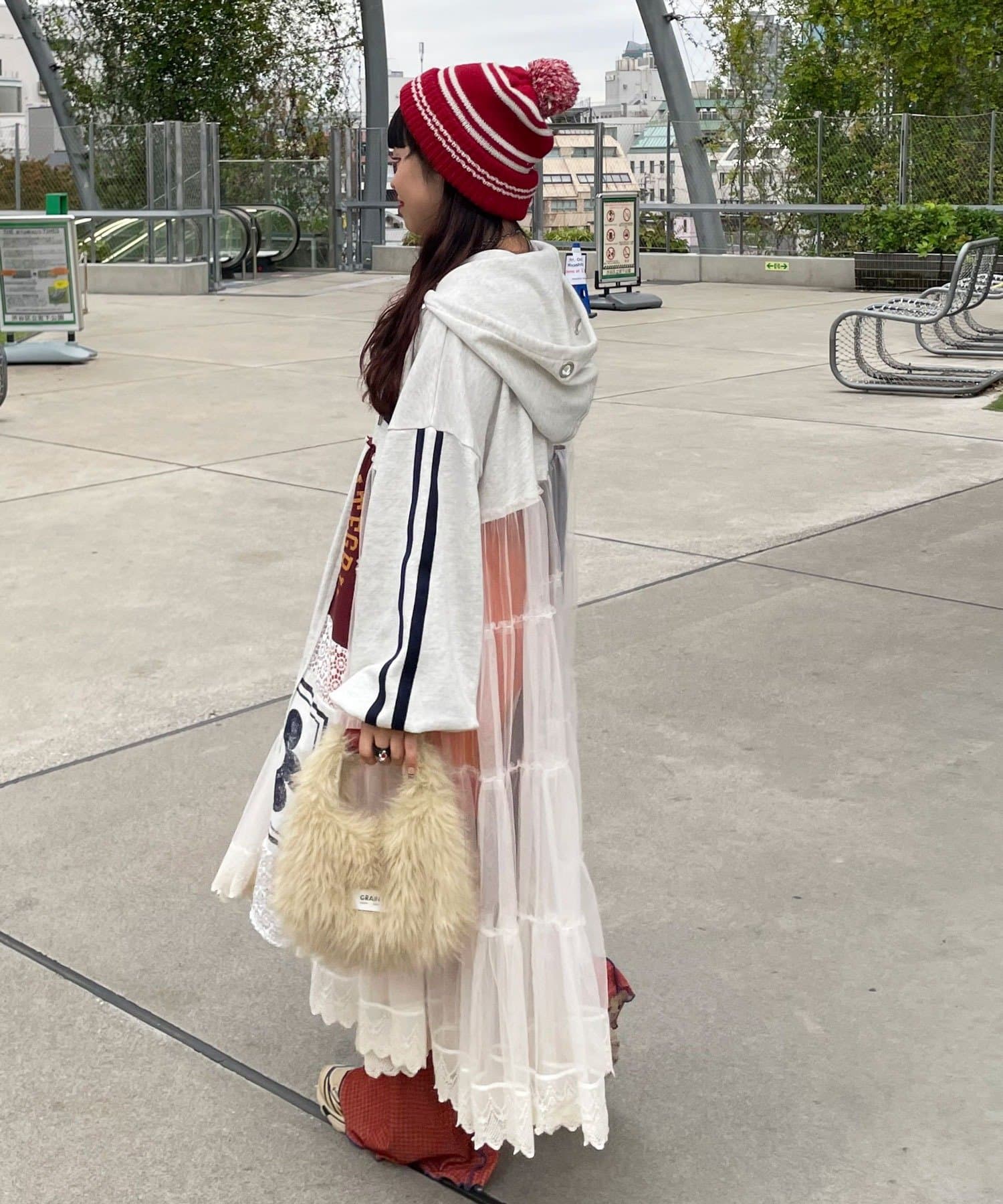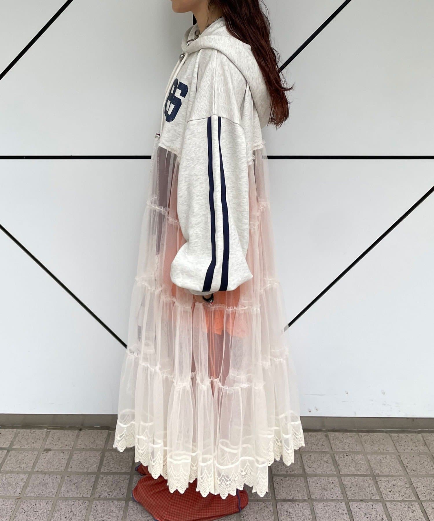 チュールの切り替えデザインでレイヤードも楽しめるアイテムになってるのでパンツスタイル、スカートスタイル、ミニスタイルなどお好みで着こなしも楽しめます!