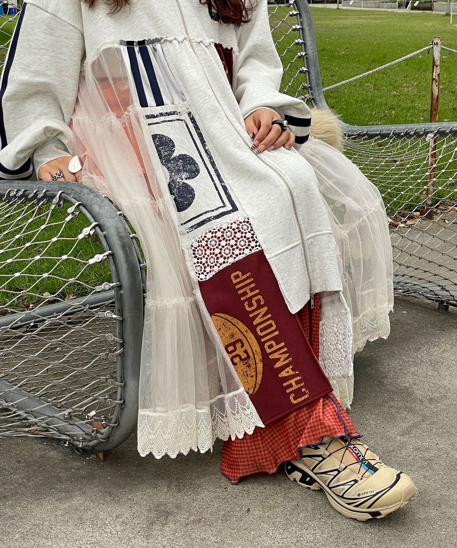 パッチワークデザインやライン袖、チュールフリルなどリメイク感のあるデザインがポイントです!
