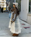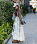 チュールの切り替えデザインでレイヤードも楽しめるアイテムになってるのでパンツスタイル、スカートスタイル、ミニスタイルなどお好みで着こなしも楽しめます!