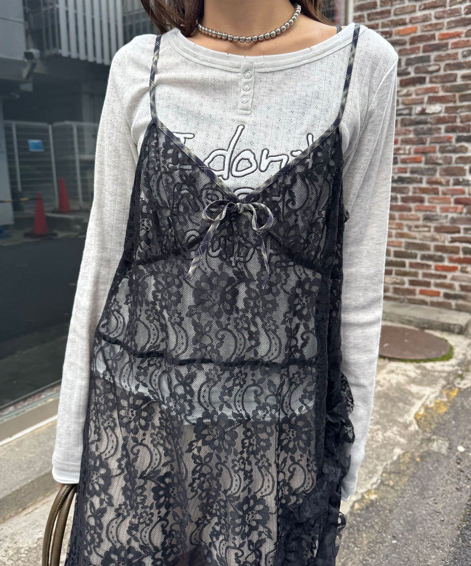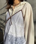繊細なレース素材に、チェック柄のパイピングを効かせたキャミワンピース。