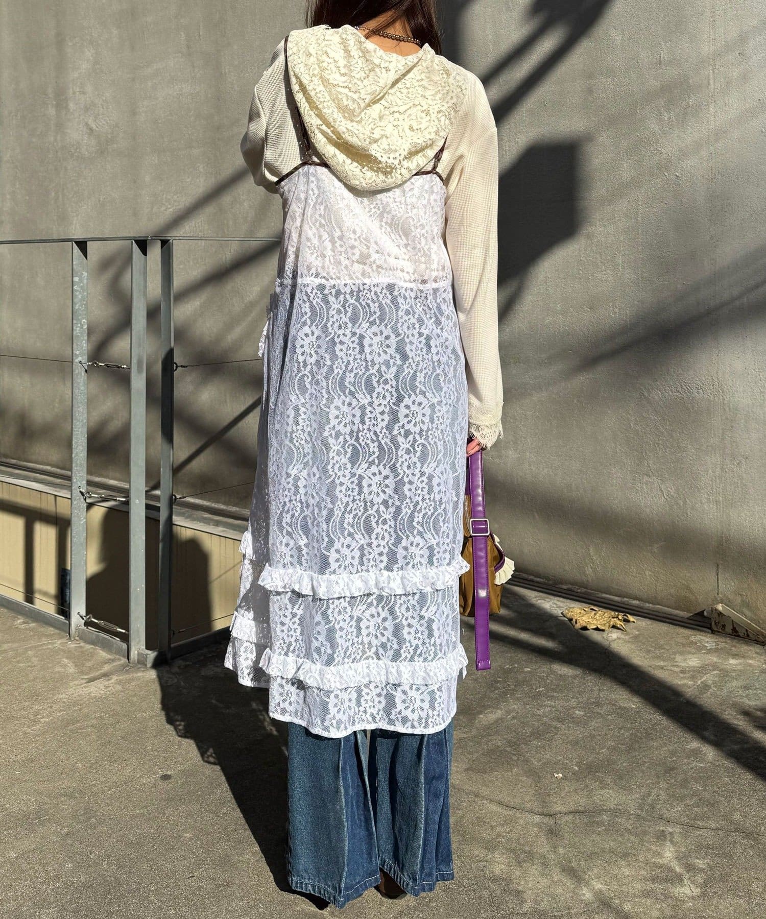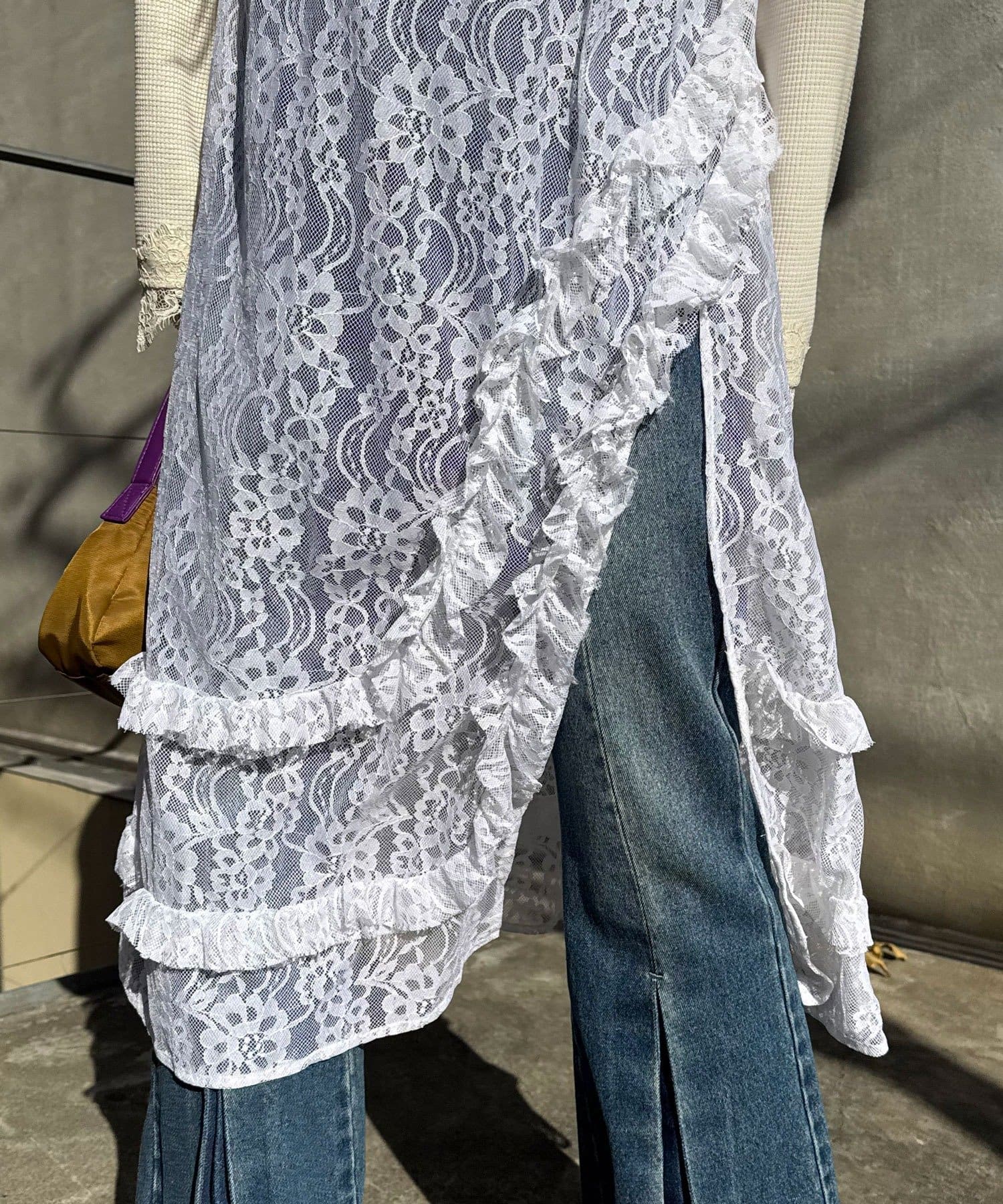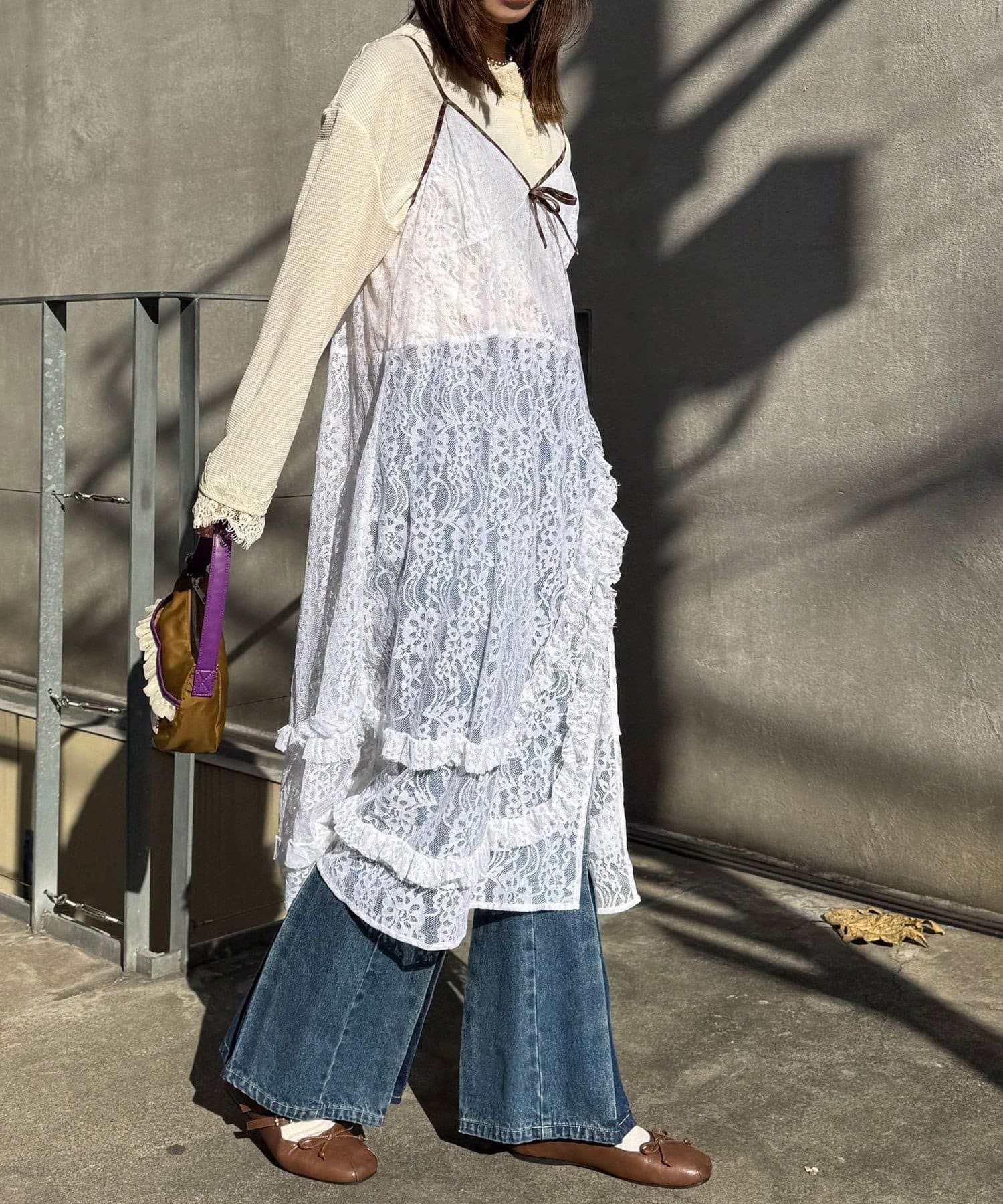 軽やかな透け感とフリルディテールが、レイヤードスタイルを華やかに。