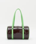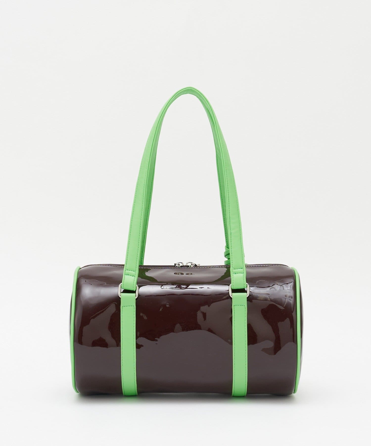 つやっとしたエナメルが存在感を放つ、ロールシルエットのショルダーバッグ。