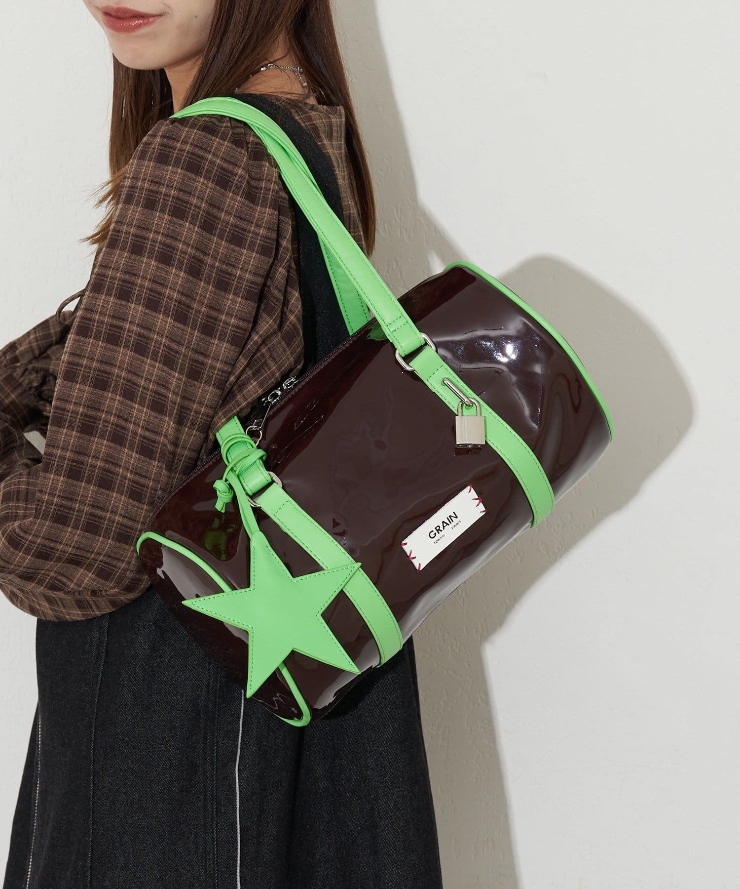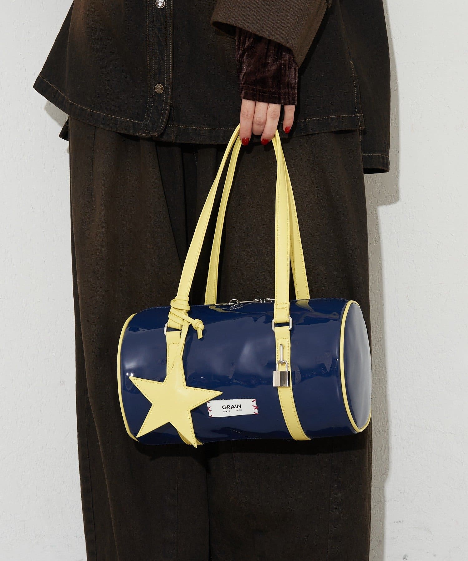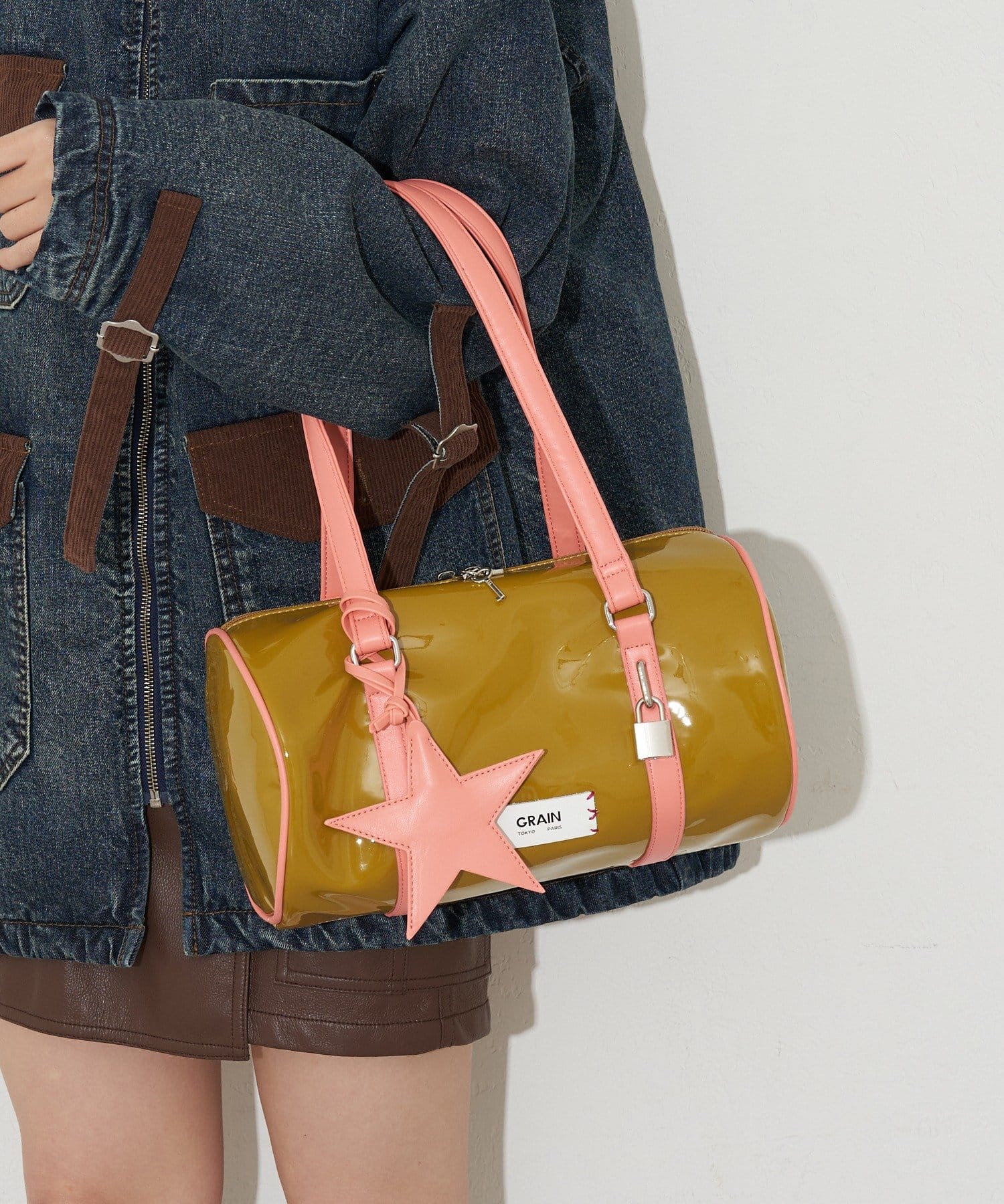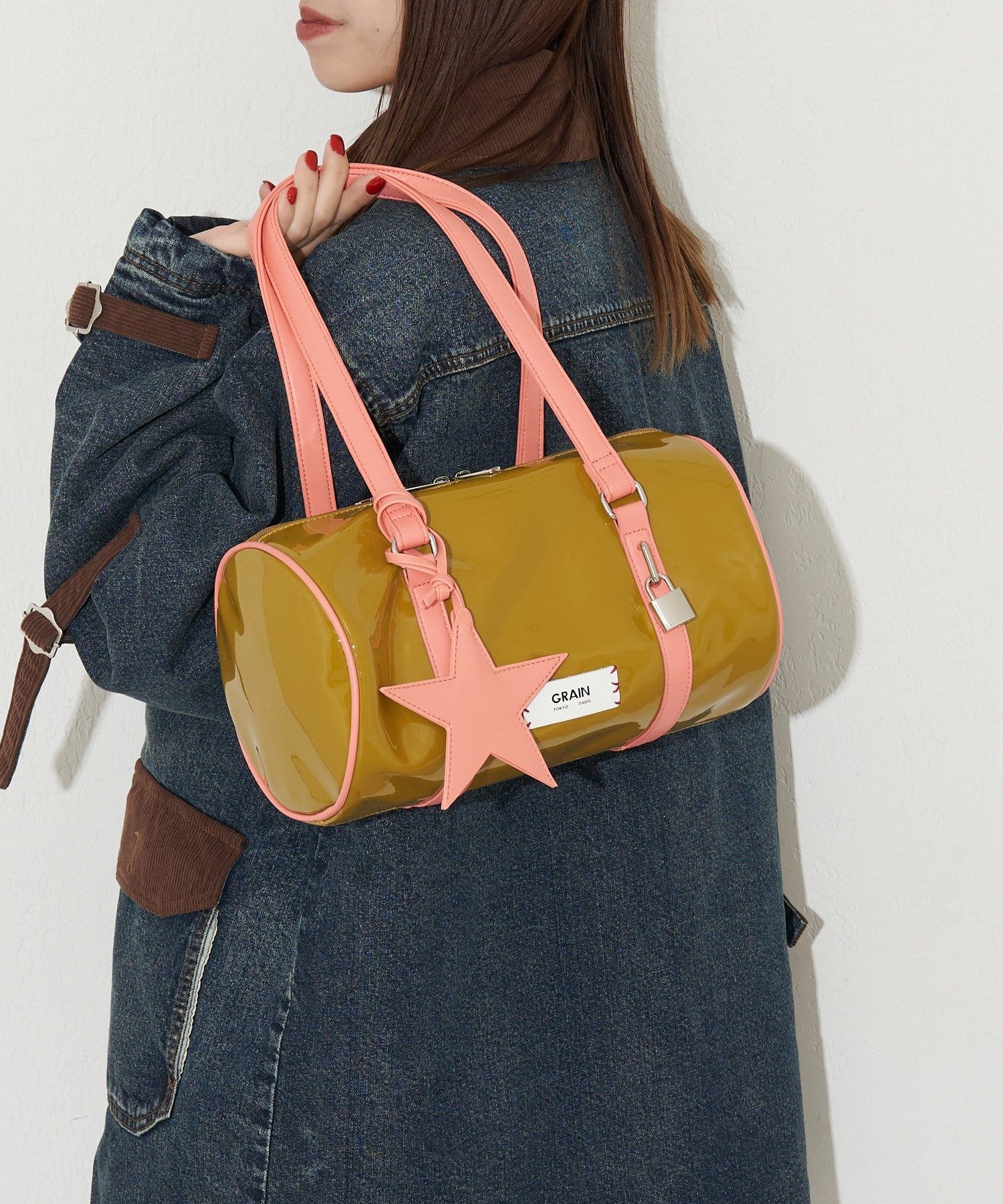 【GRAIN/グレイン】スターチャーム付きエナメルロールボストンバッグ
