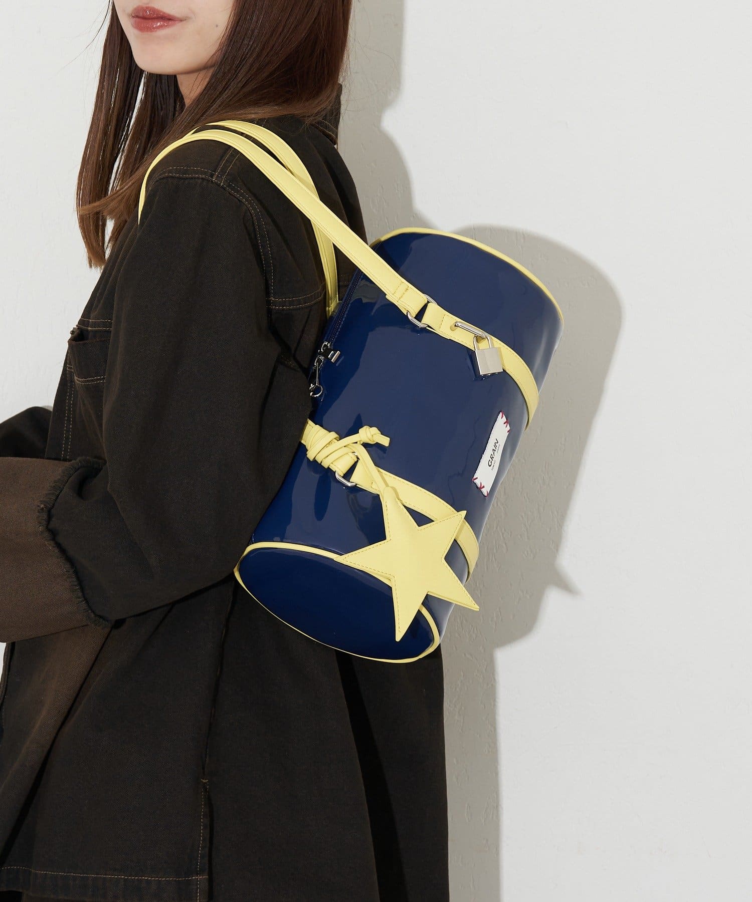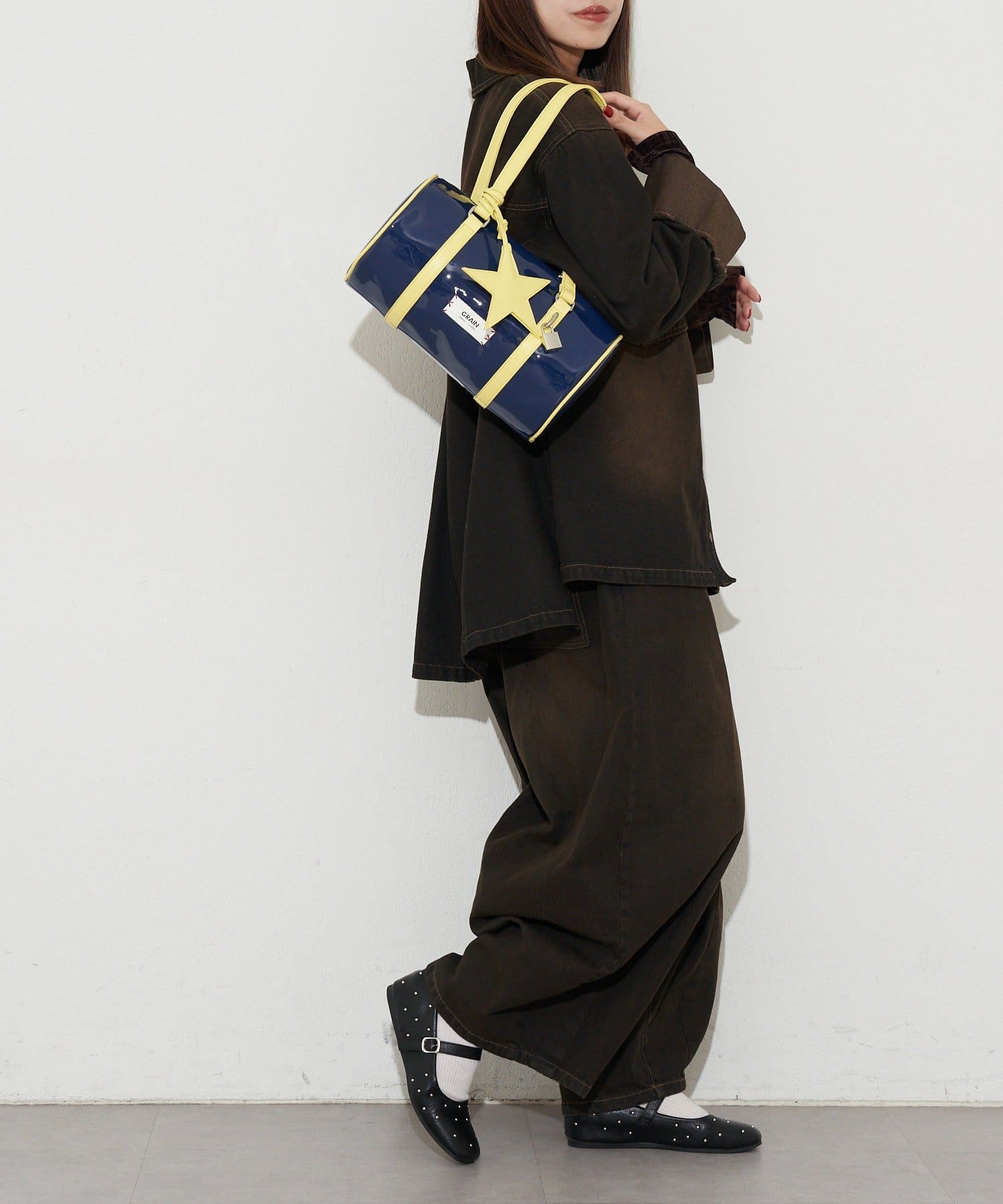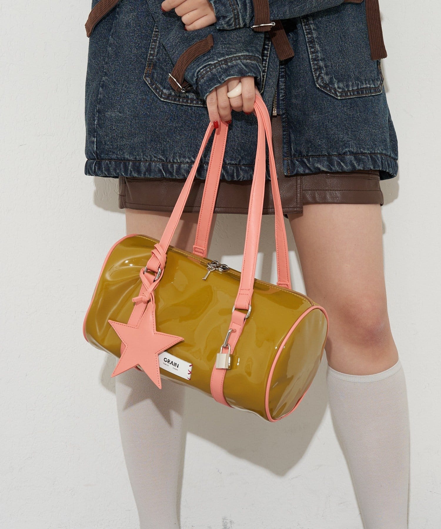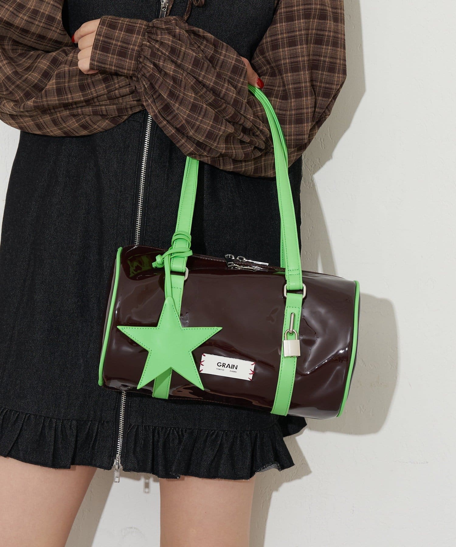 【GRAIN/グレイン】スターチャーム付きエナメルロールボストンバッグ