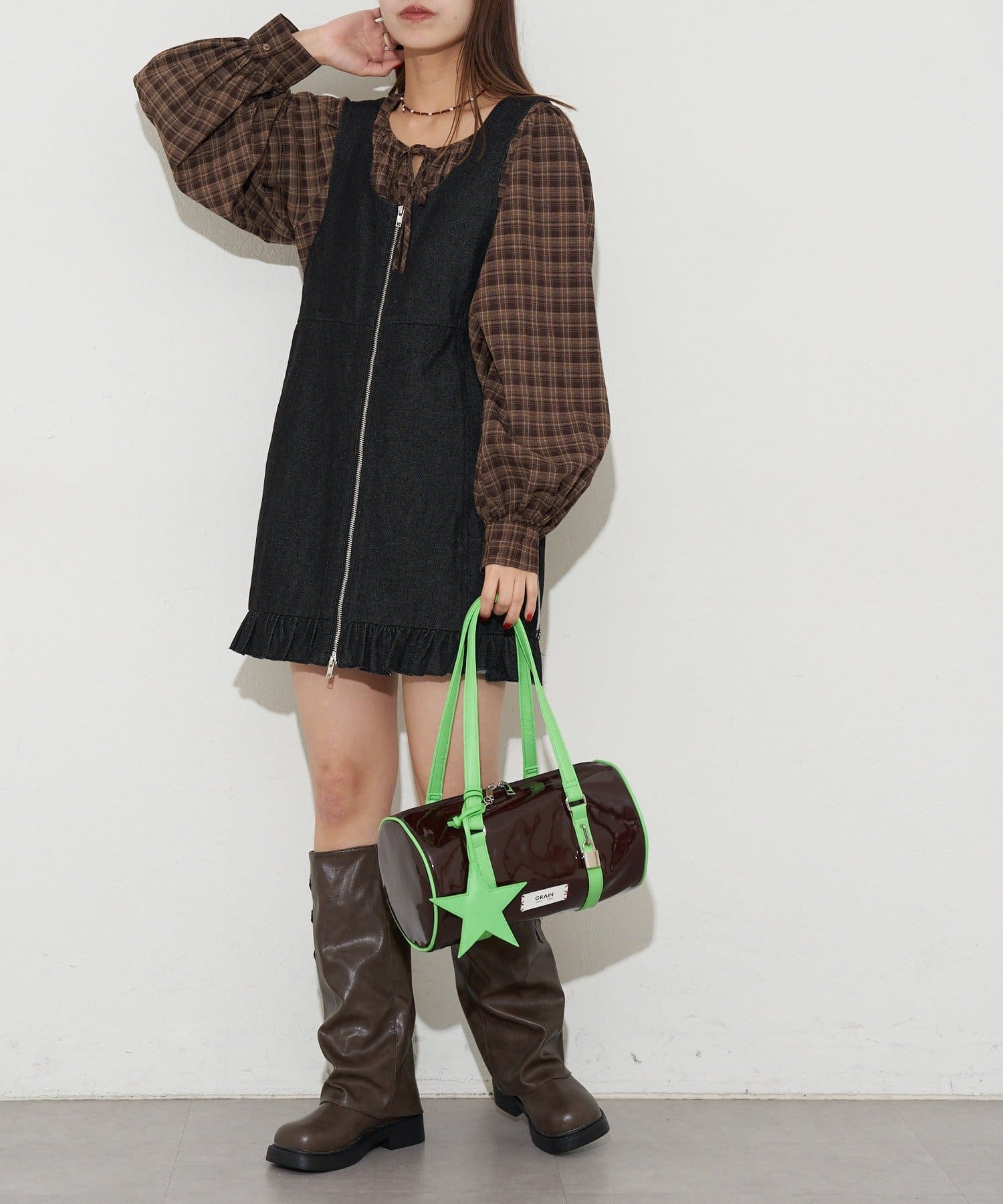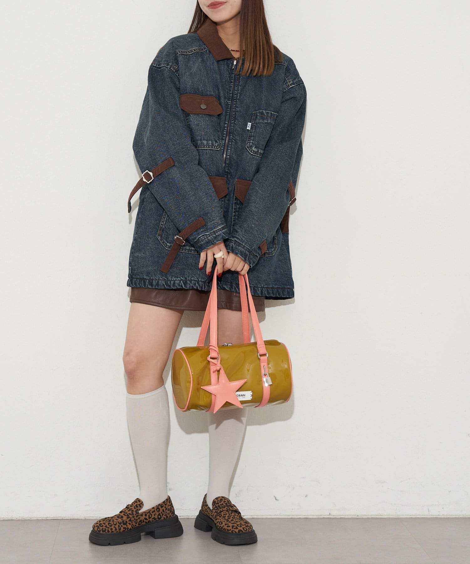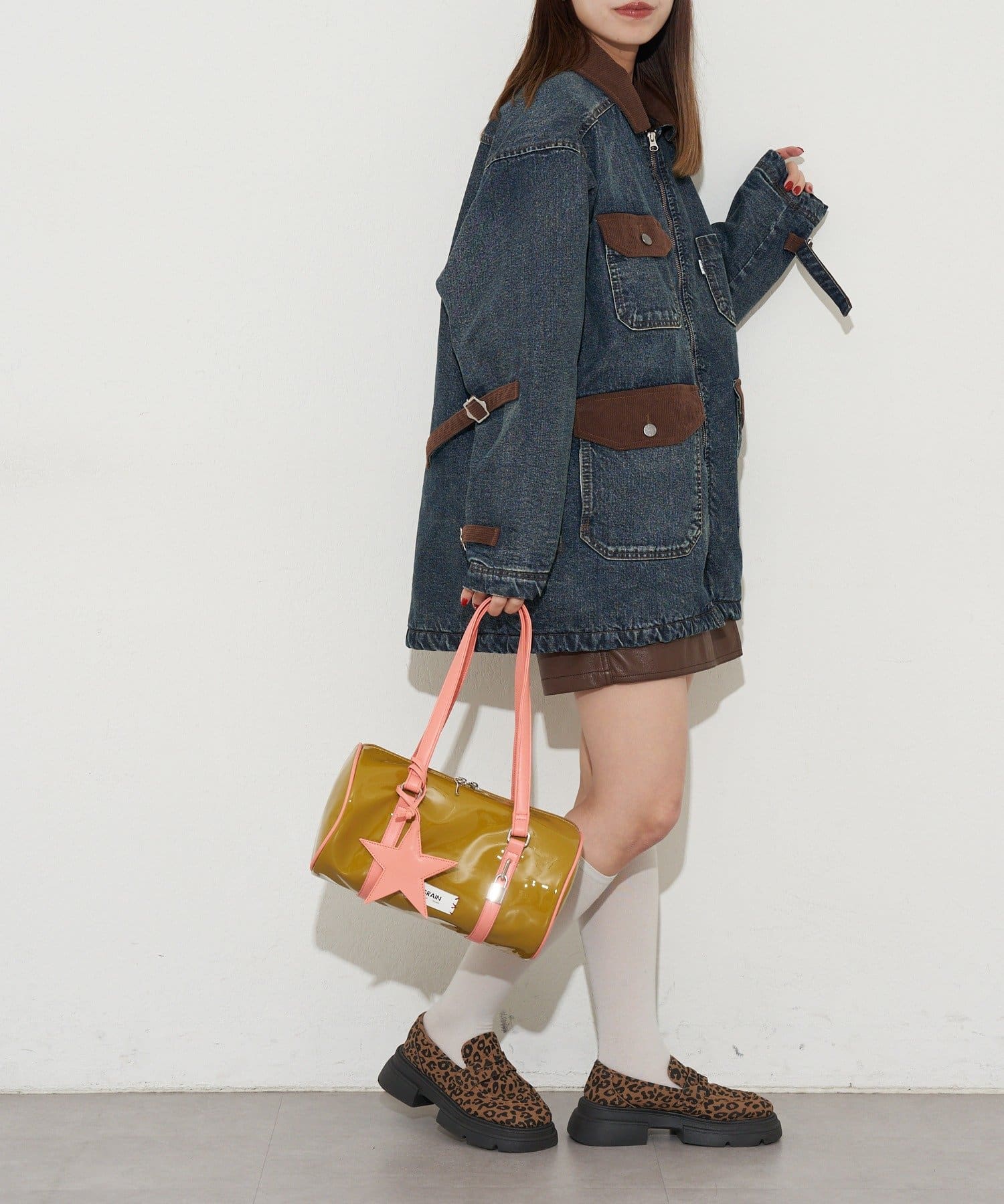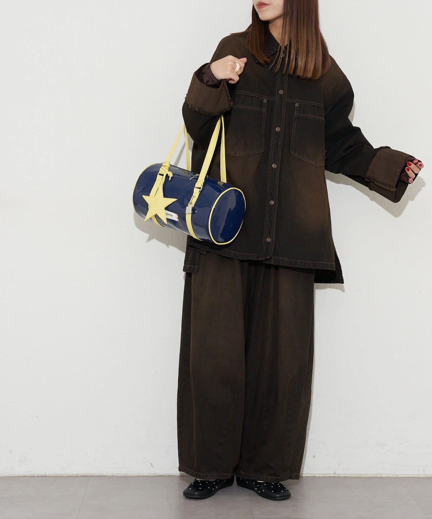 【GRAIN/グレイン】スターチャーム付きエナメルロールボストンバッグ