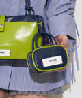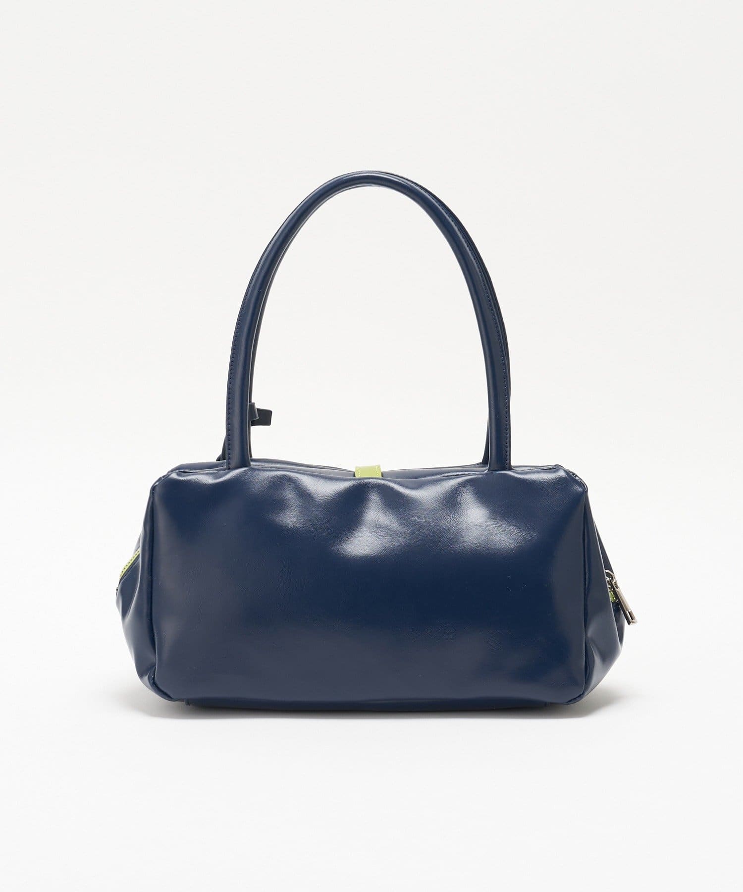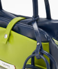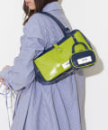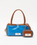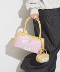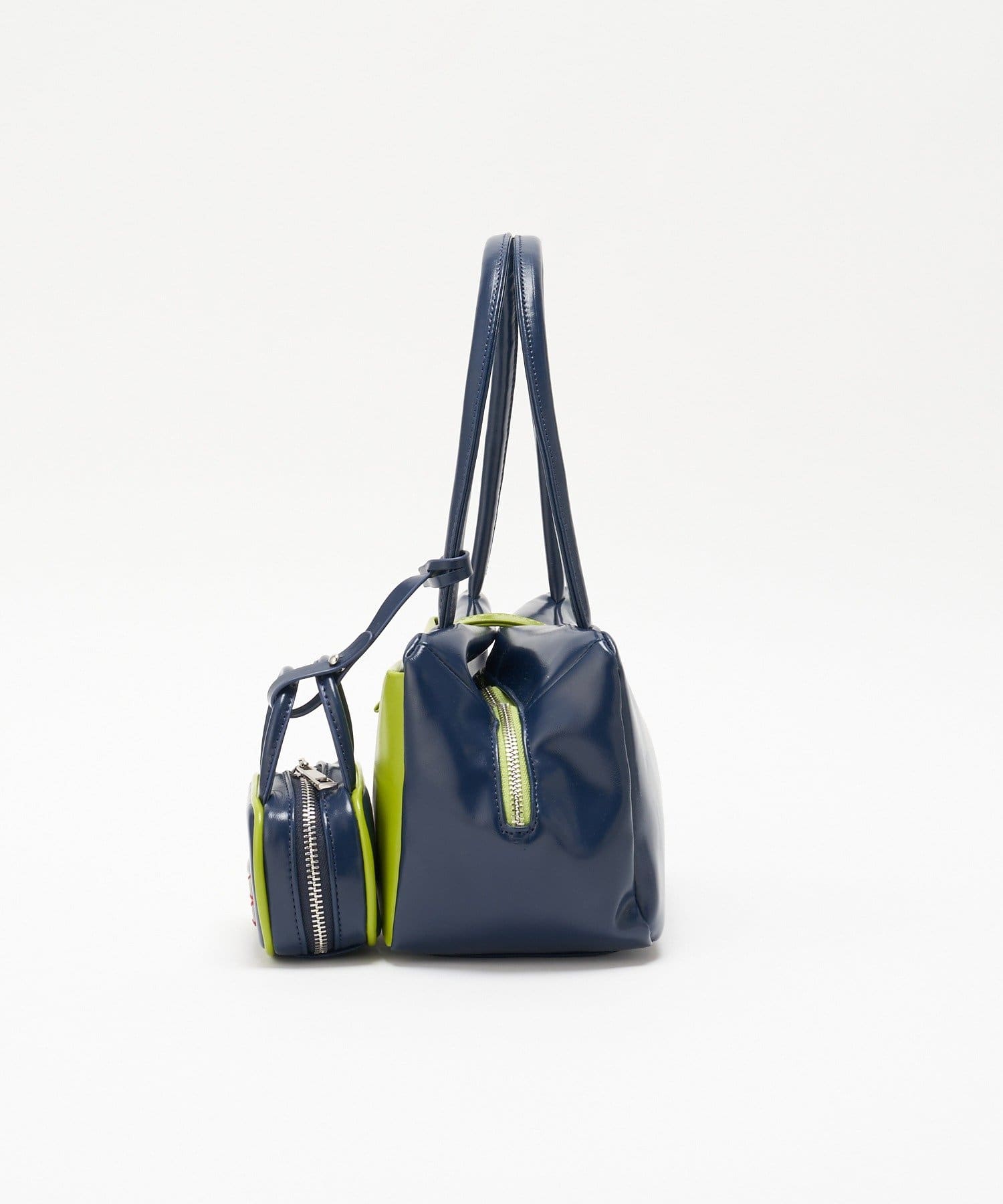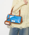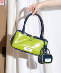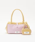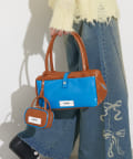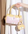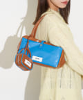 配色デザインが目を引くボストン型バッグに、ミニサイズのバッグチャームをセットにしたアイテム。