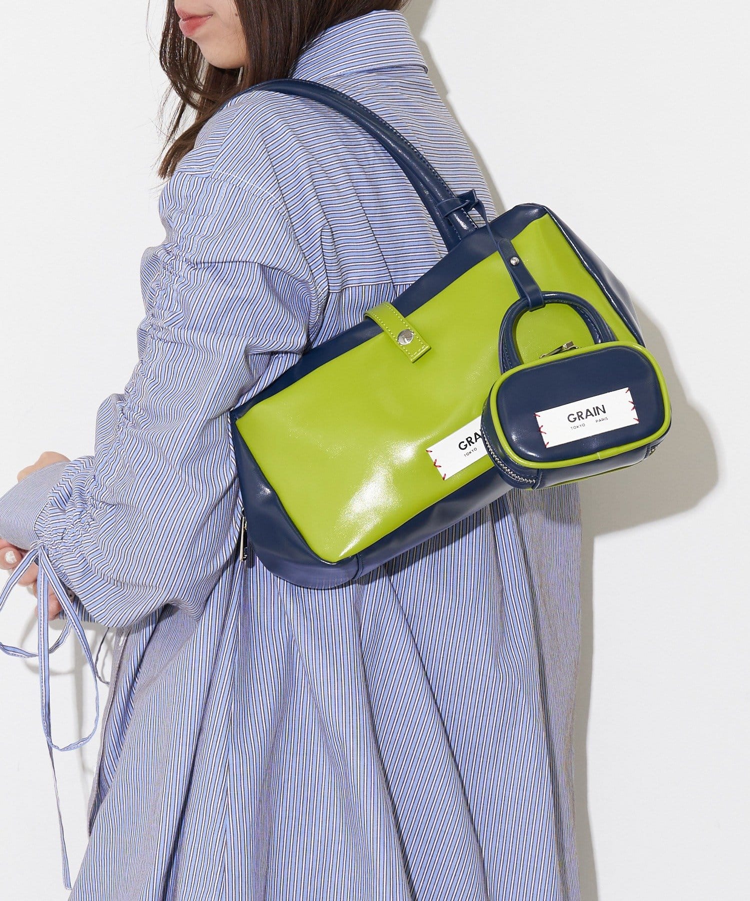 【GRAIN/グレイン】バッグチャーム付きバイカラーバッグ