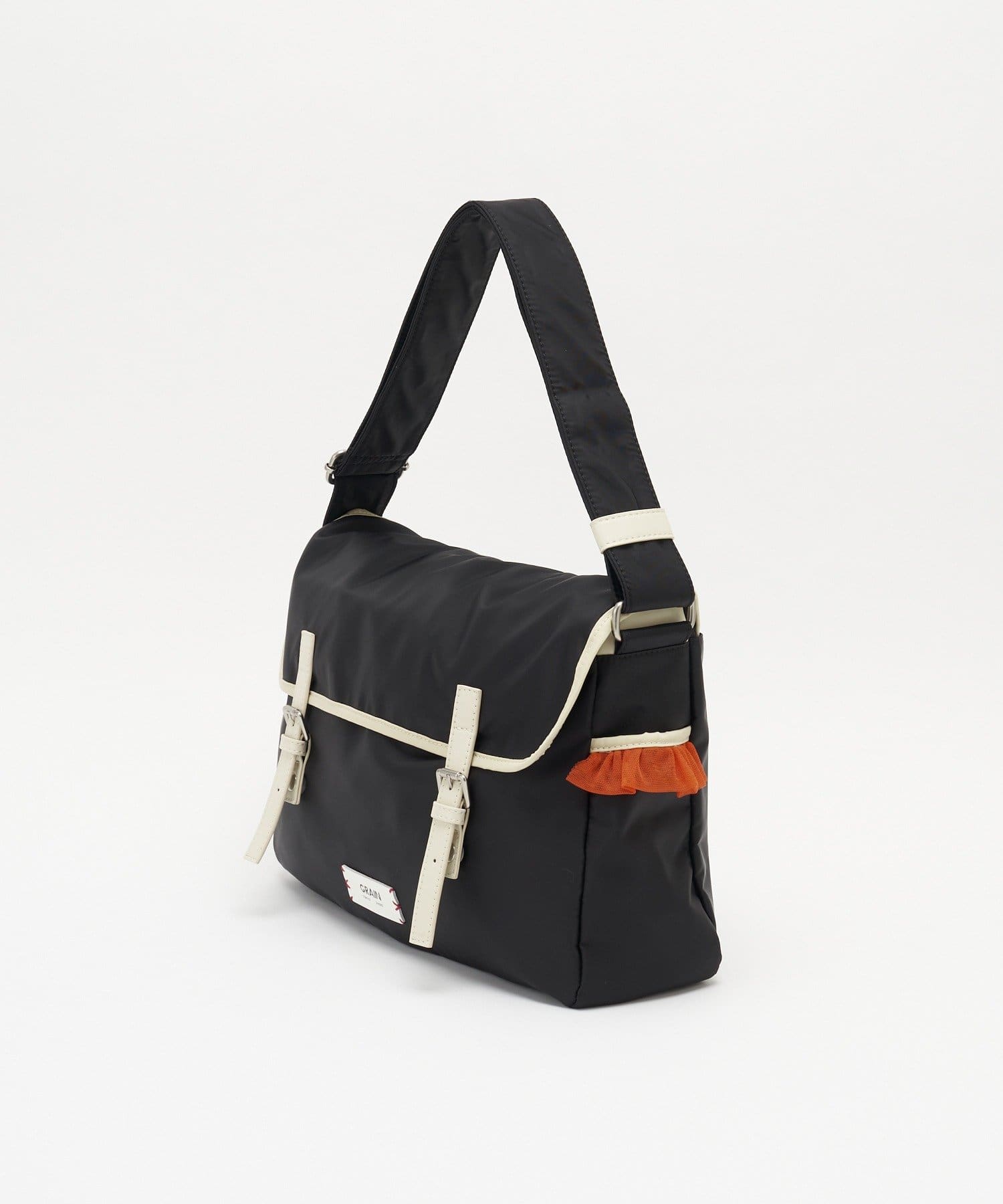 メッセンジャーバッグにチュールフリルをプラスした、遊び心のあるデザイン。