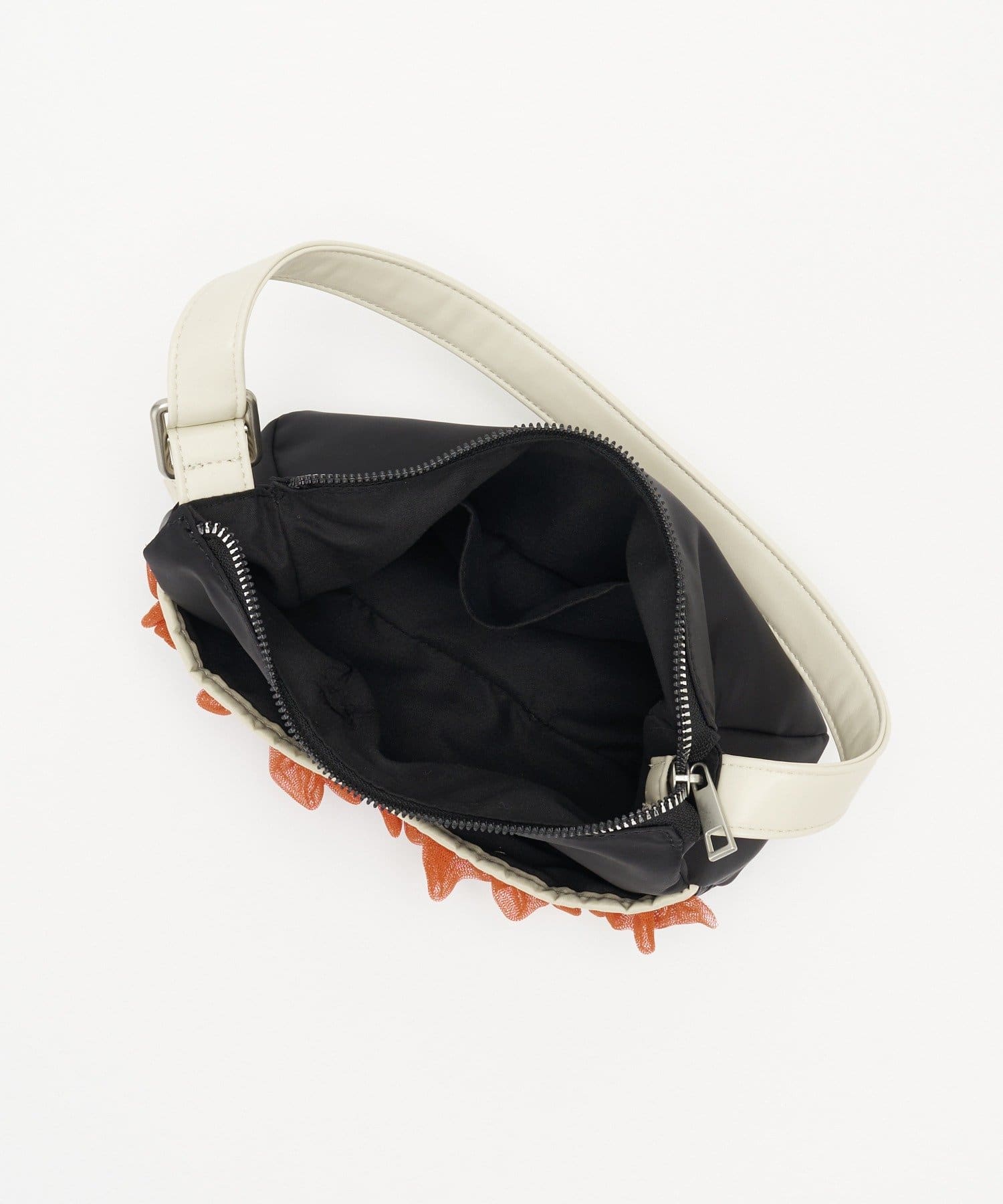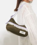 チュールフリルをあしらったデザインが目を引く、ワンハンドルバッグ。