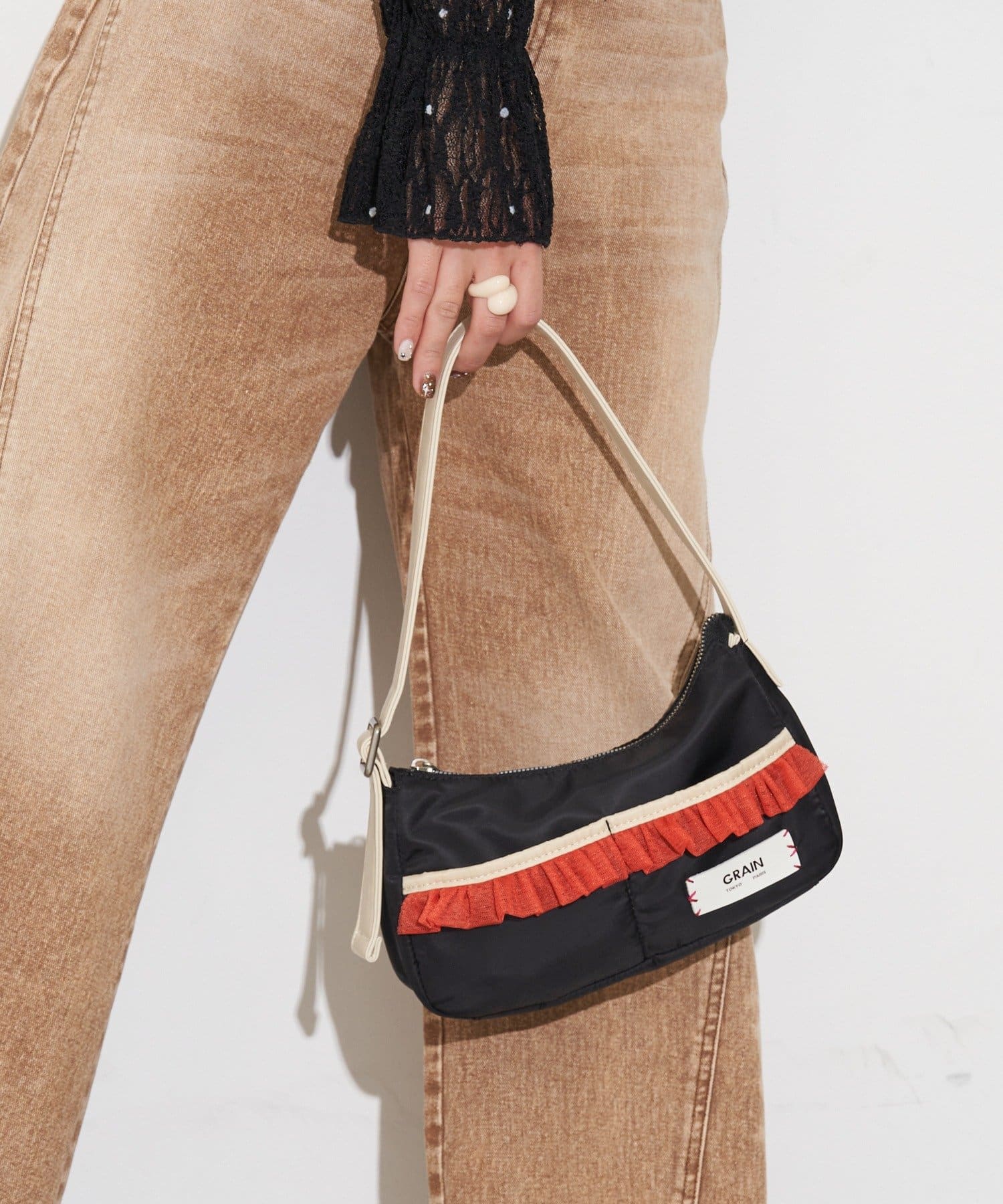 【GRAIN/グレイン】チュールフリルワンハンドルバッグ