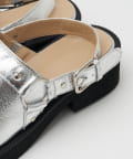 カラーソックスや柄タイツを合わせたレイヤードも、バックストラップのデザインが引き立ち、より個性が際立ちます。