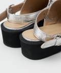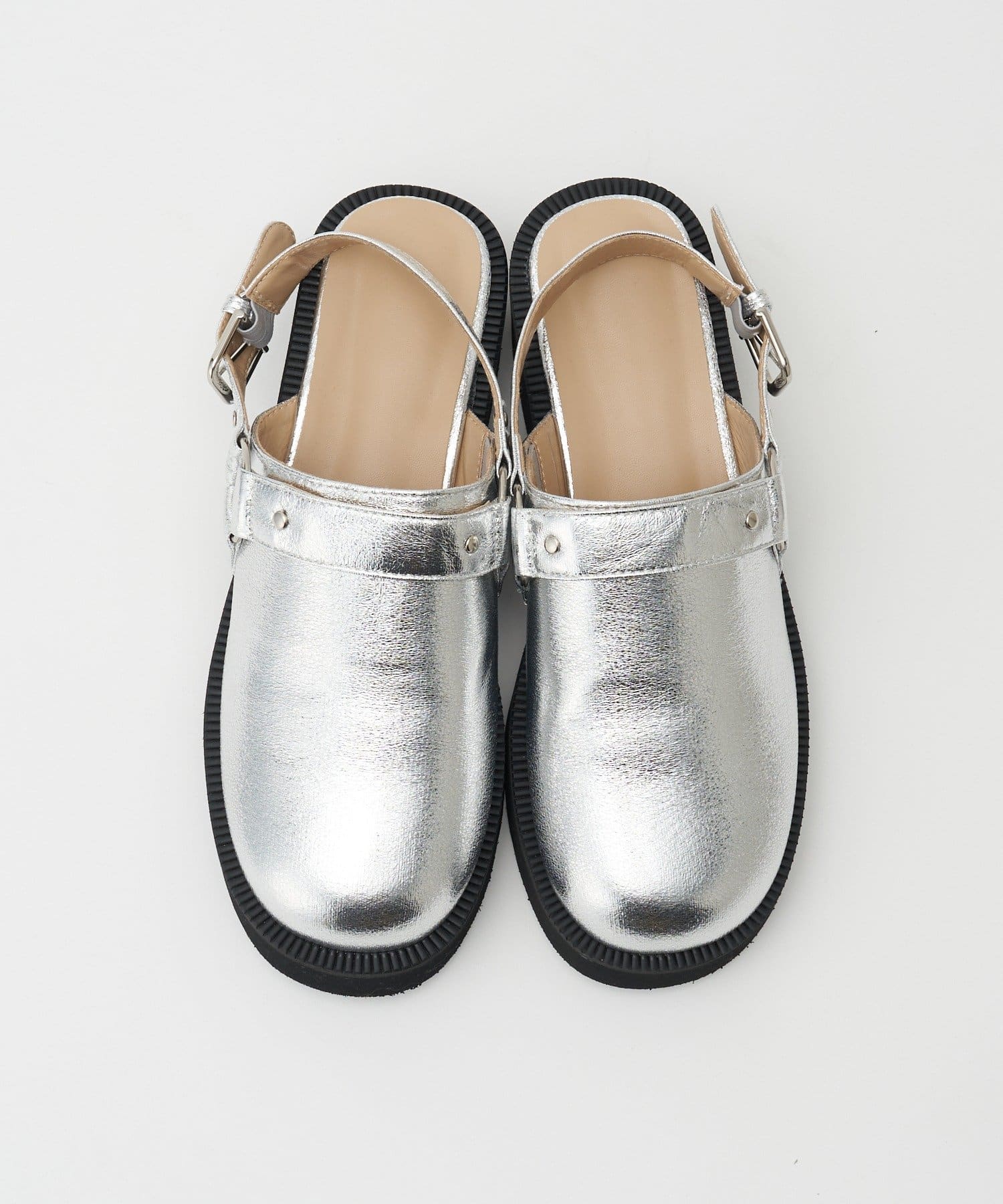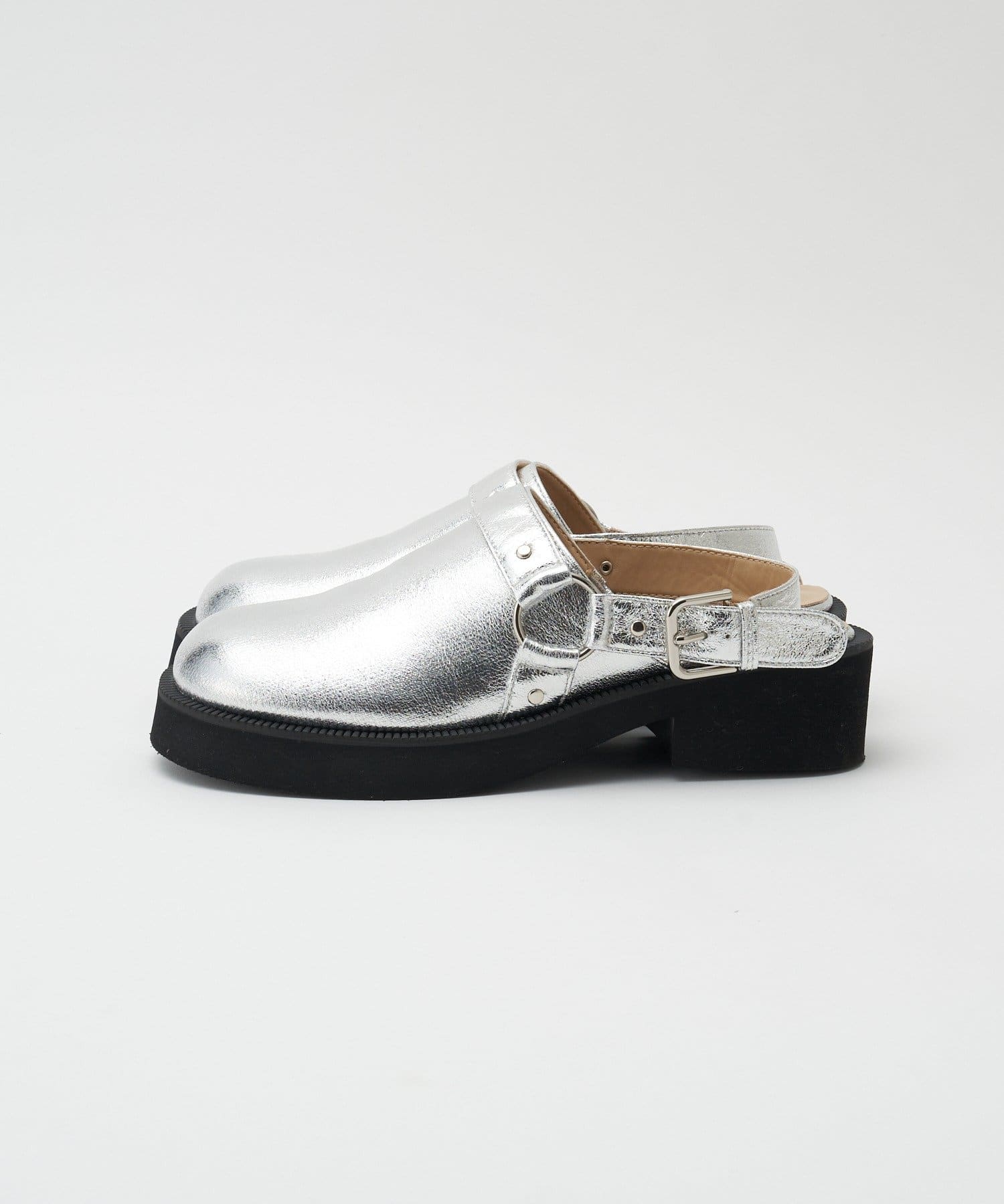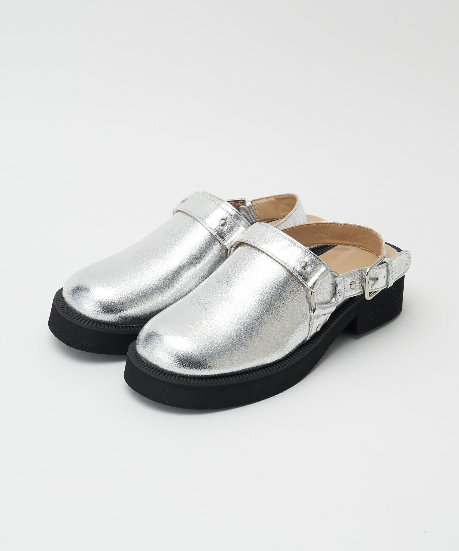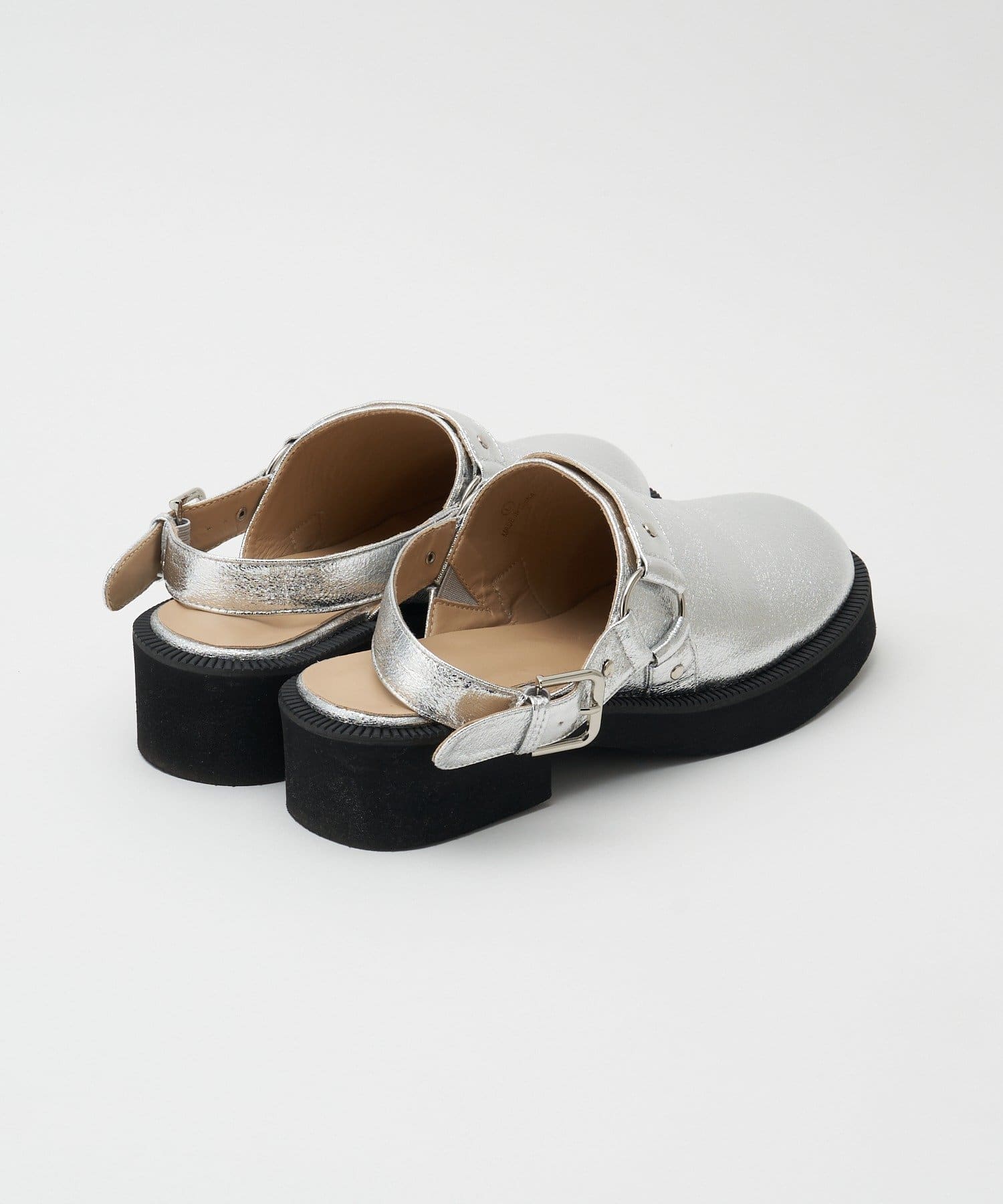 フェイクレザーと、存在感のある厚底ソールを組み合わせたサボサンダル。