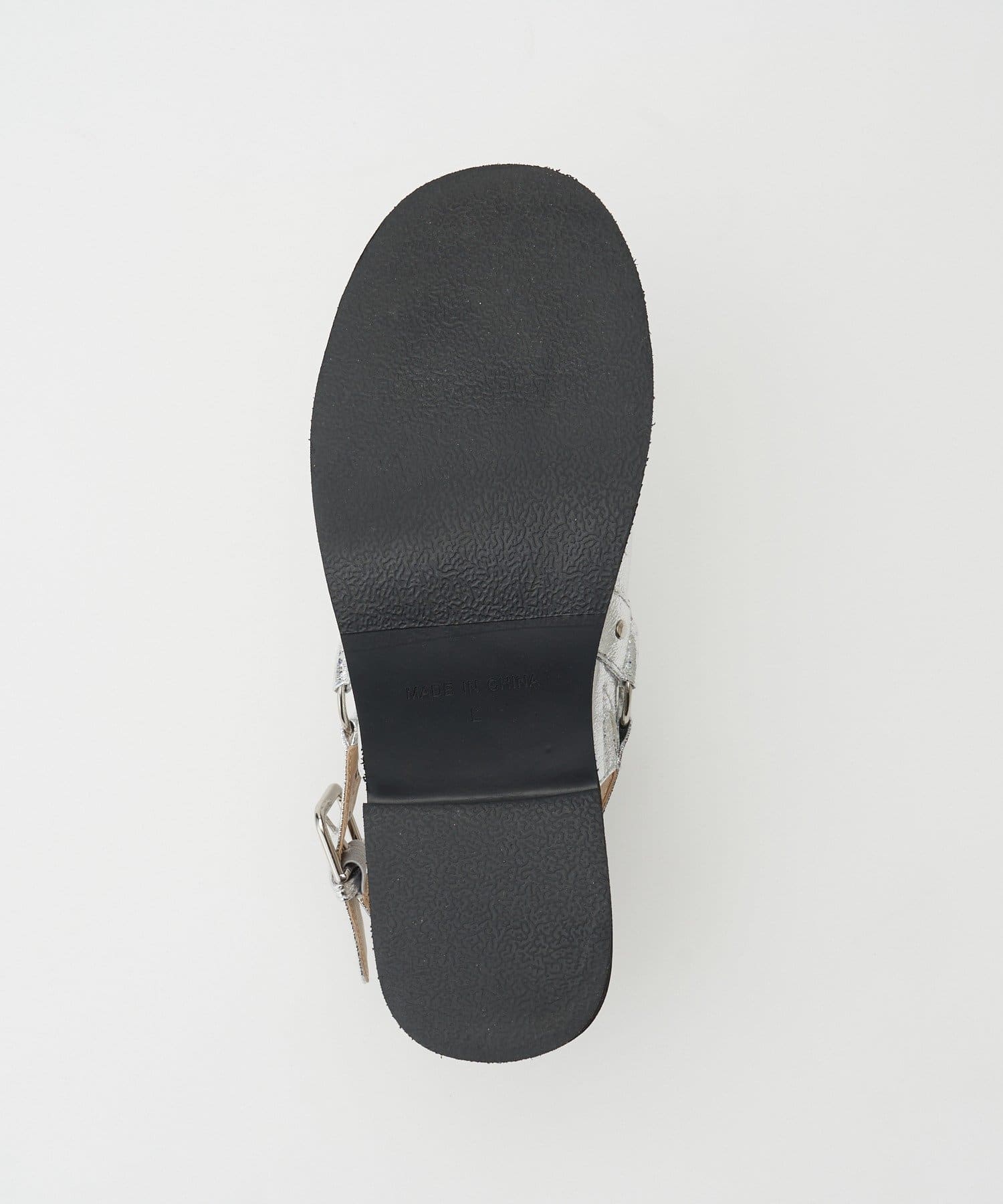バックルベルトのデザインがアクセントになり、サンダルながらもシューズのような重厚感のある足元を演出します。