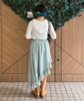 アシンメトリーな裾のデザインは、脚のラインを綺麗に見せてくれる効果も。