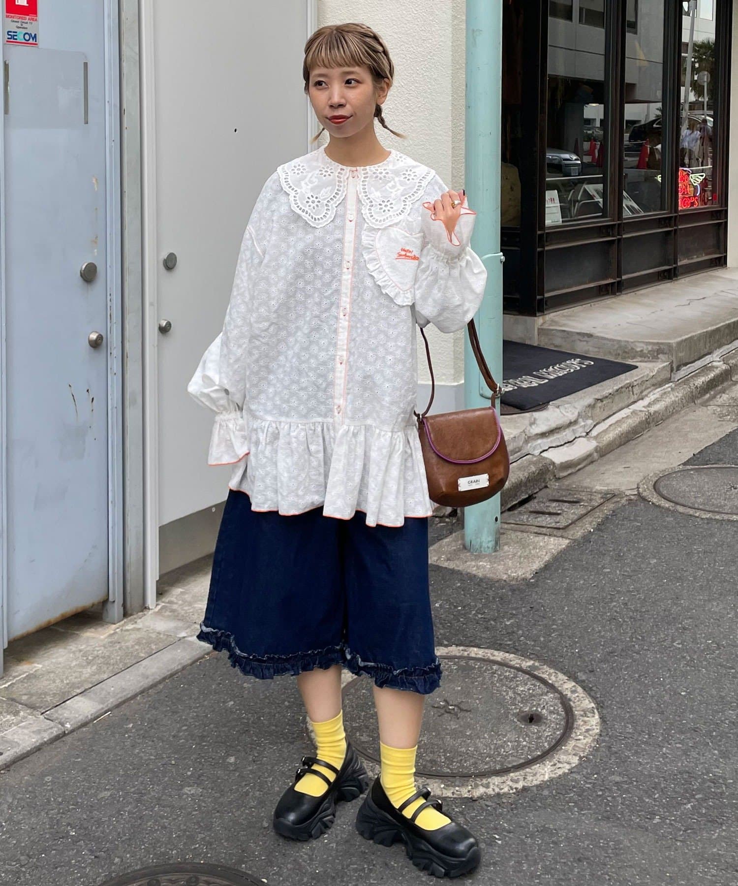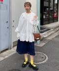ワイドデニム合わせで甘すぎないカジュアルスタイルが完成します◎