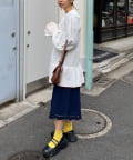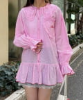 ミニ丈ボトムと合わせてワンピース風に着こなせば、フェミニンさとカジュアルさを両立した旬のスタイルに。