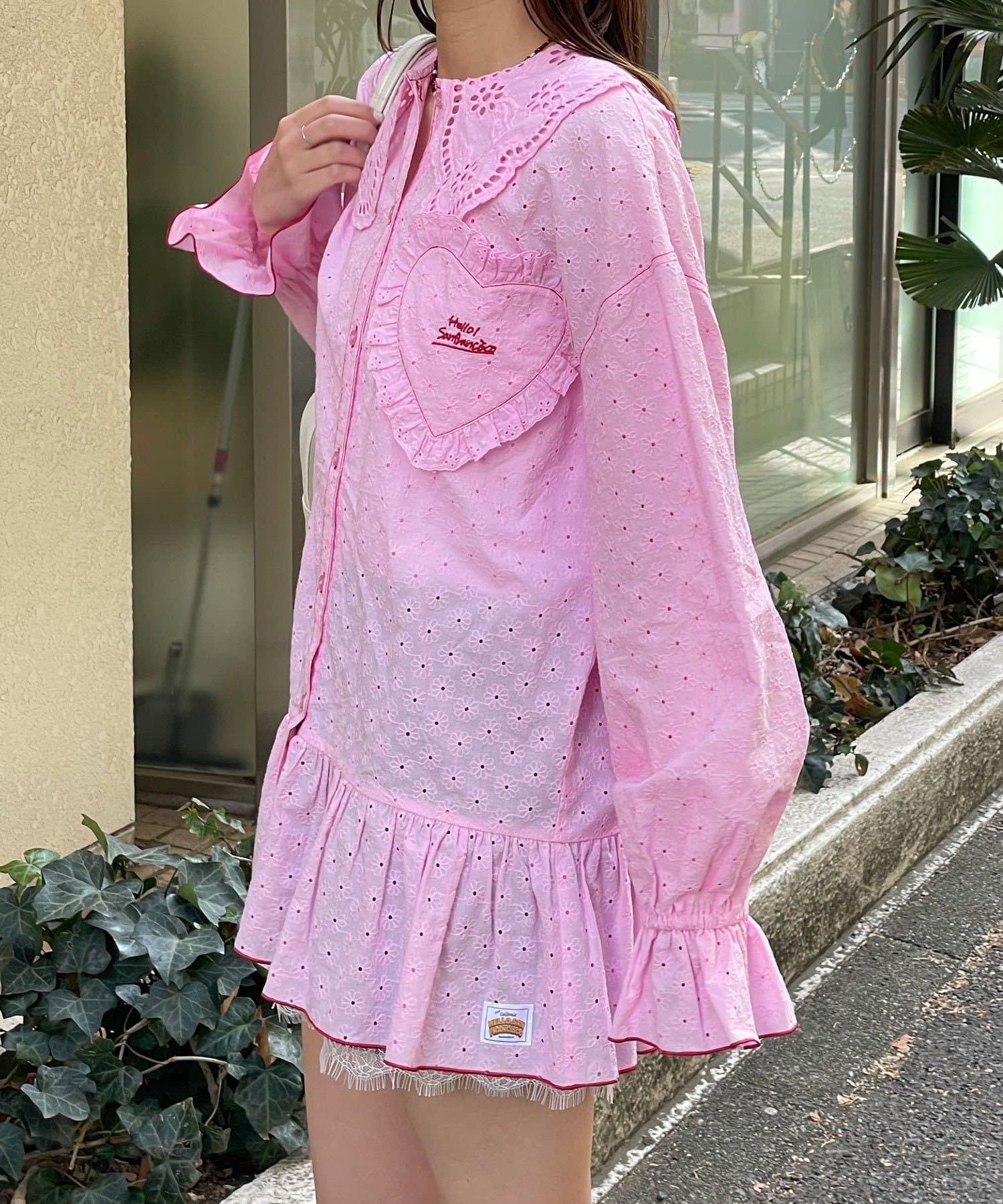 存在感のある大きな襟や、胸元のハート型ポケットなど、遊び心のあるディテールを詰め込みました。