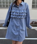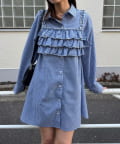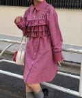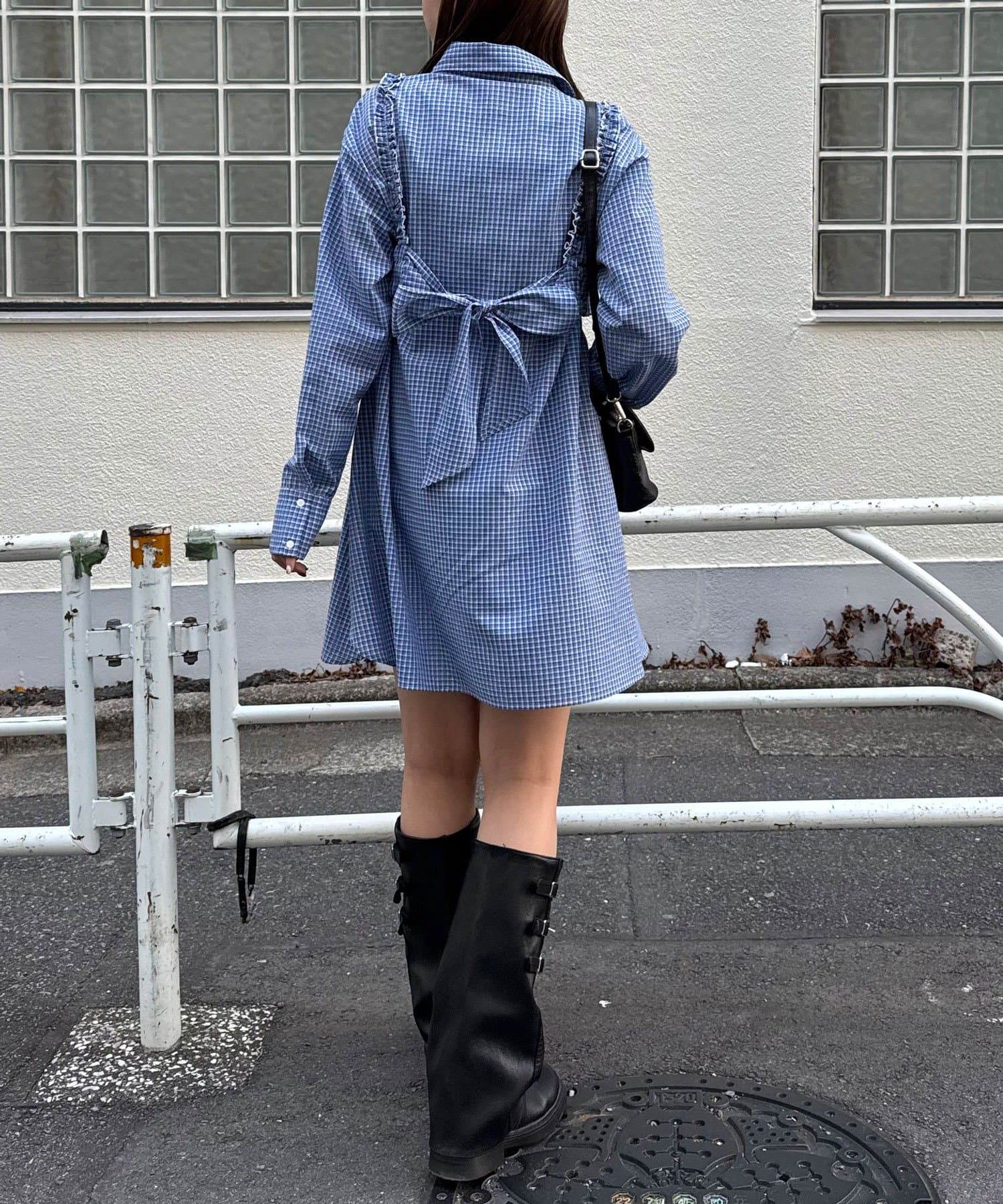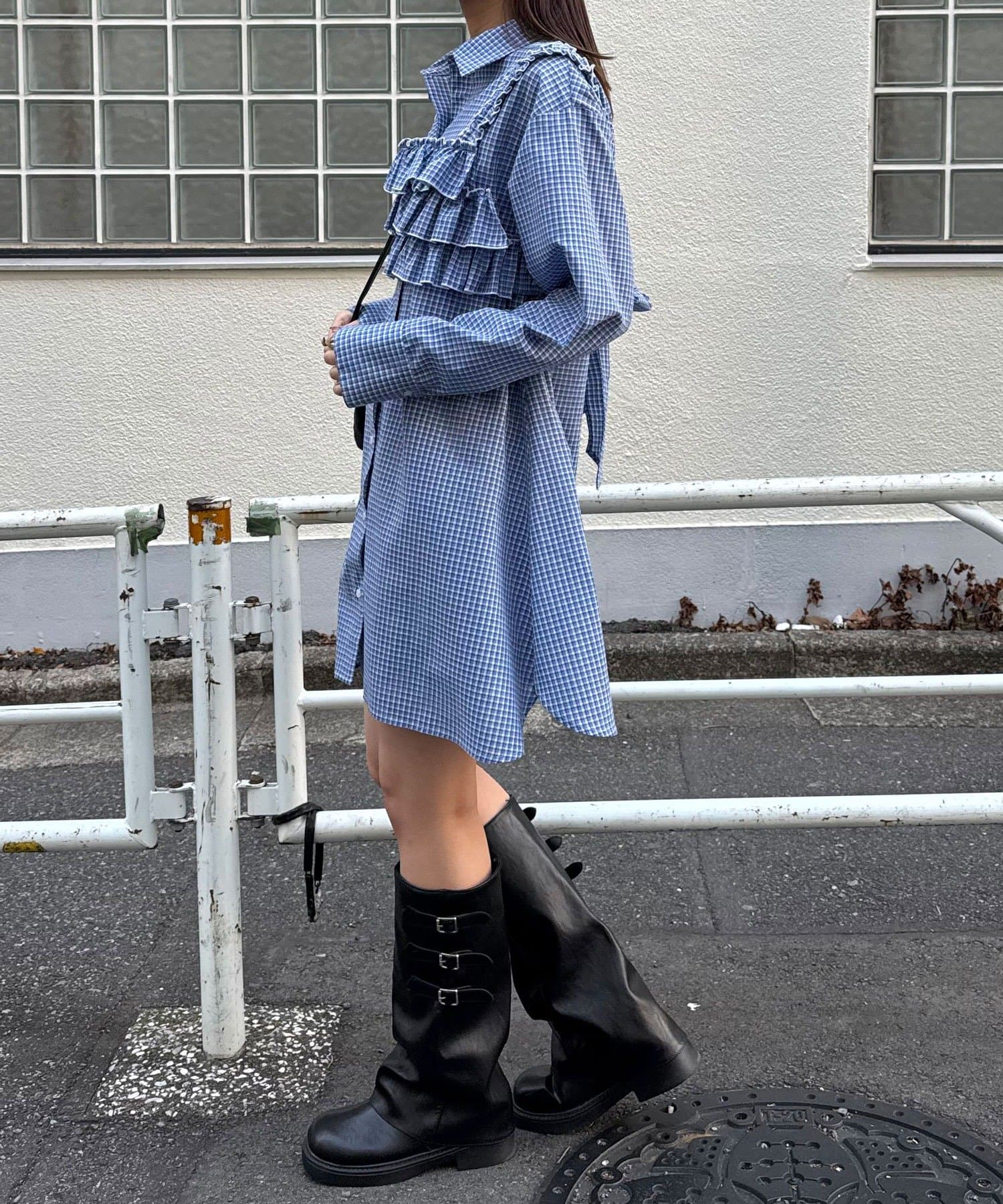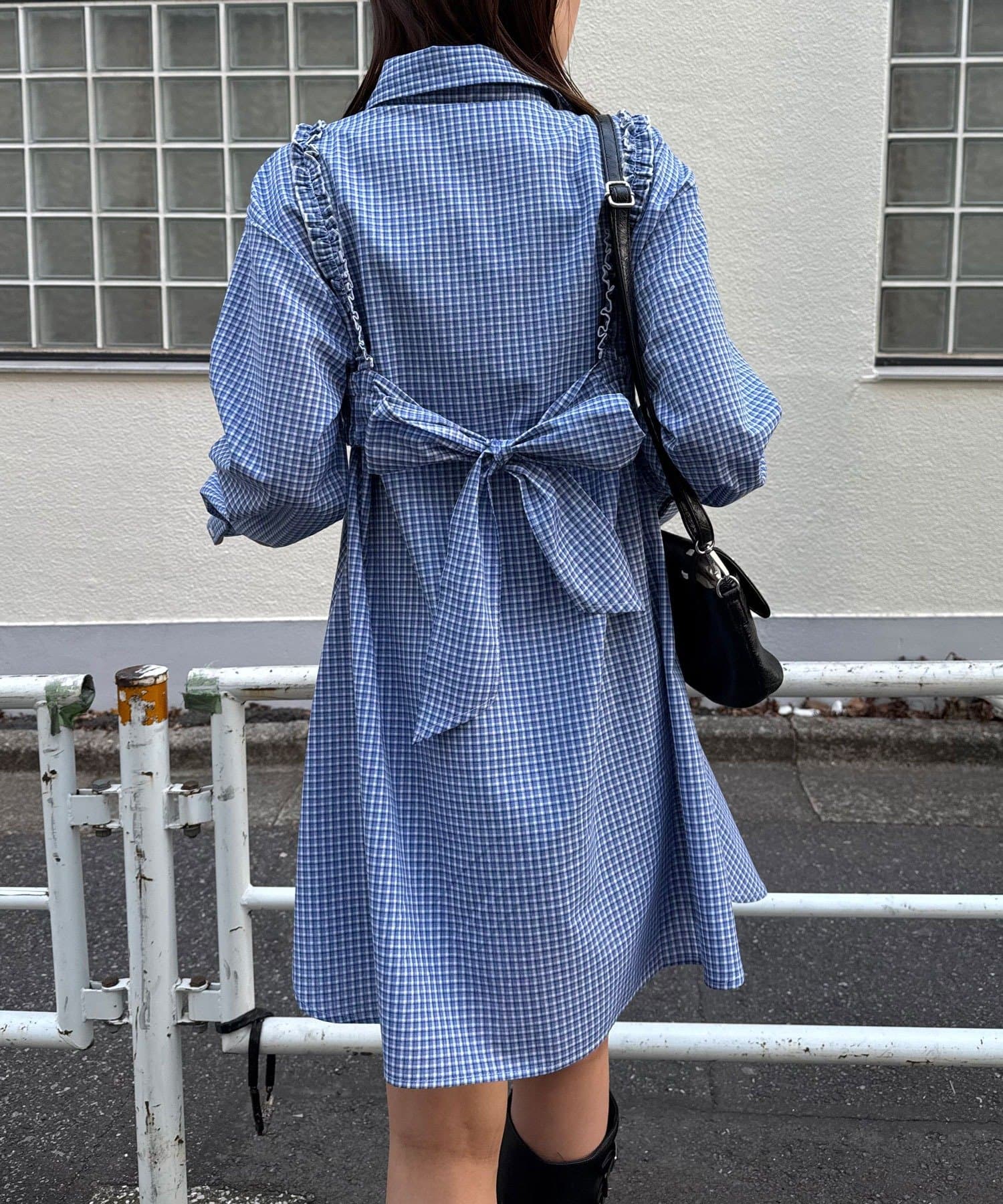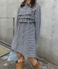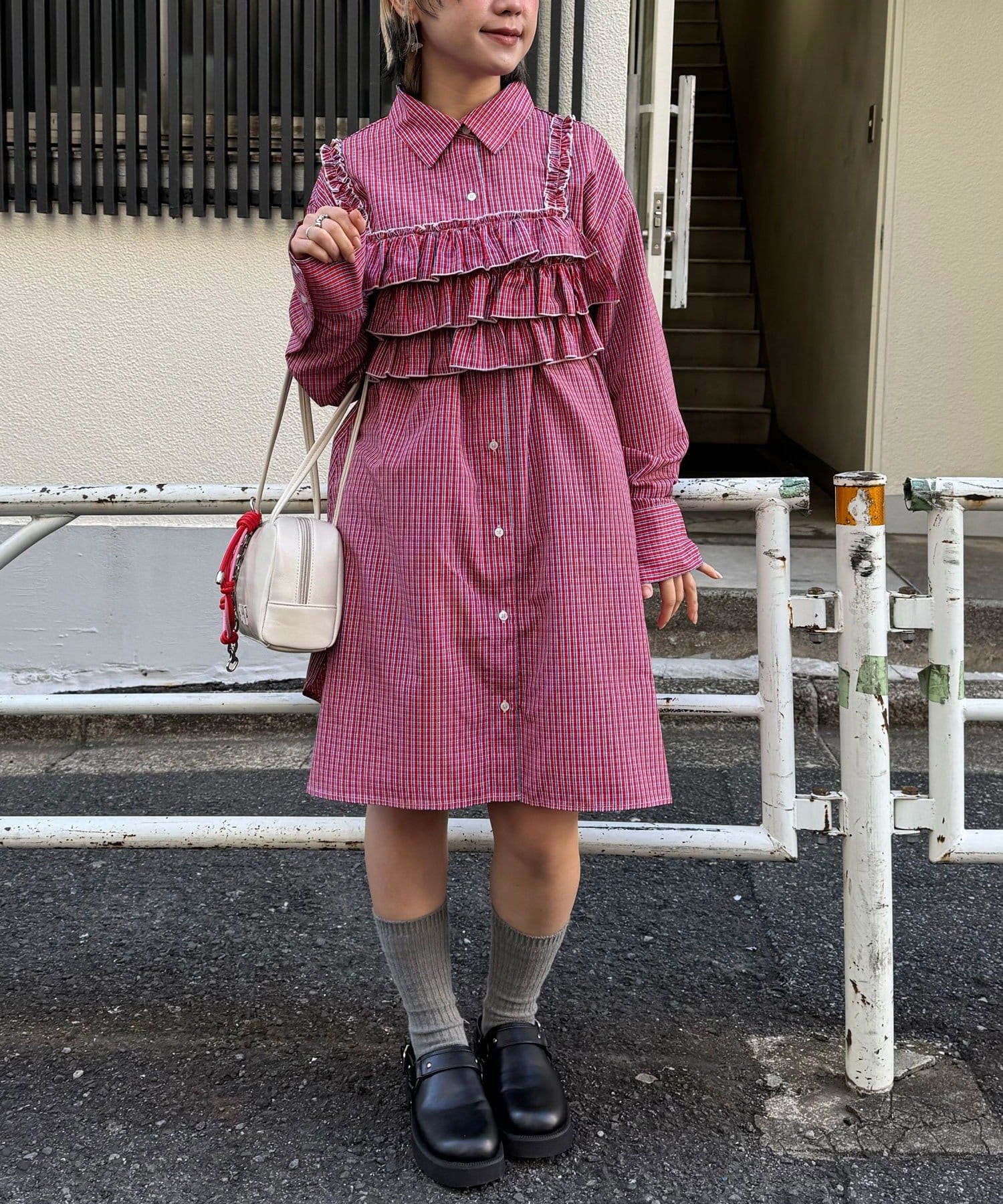 チェックに胸元のフリルが映えるビスチェセットシャツ。