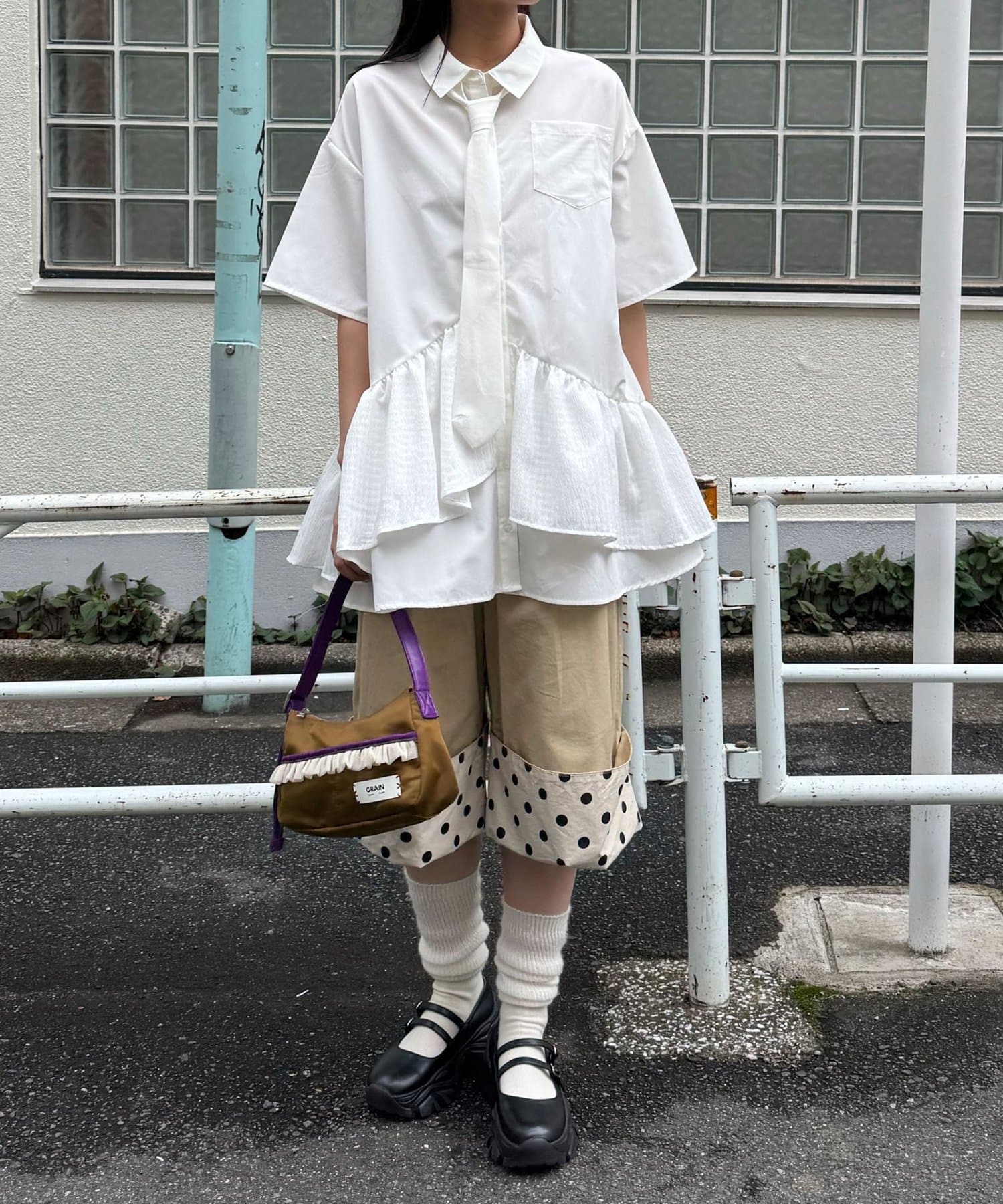 ネクタイをつけてソックス×ローファーを合わせれば、今っぽいスクールムードに。