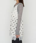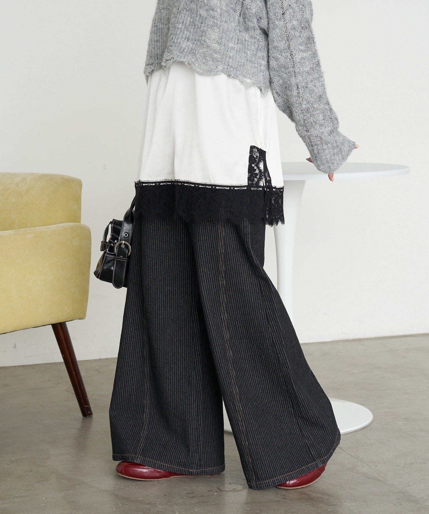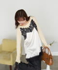 ・チュニックは裾と袖口のレースがポイントで、さりげなく甘さをプラス。