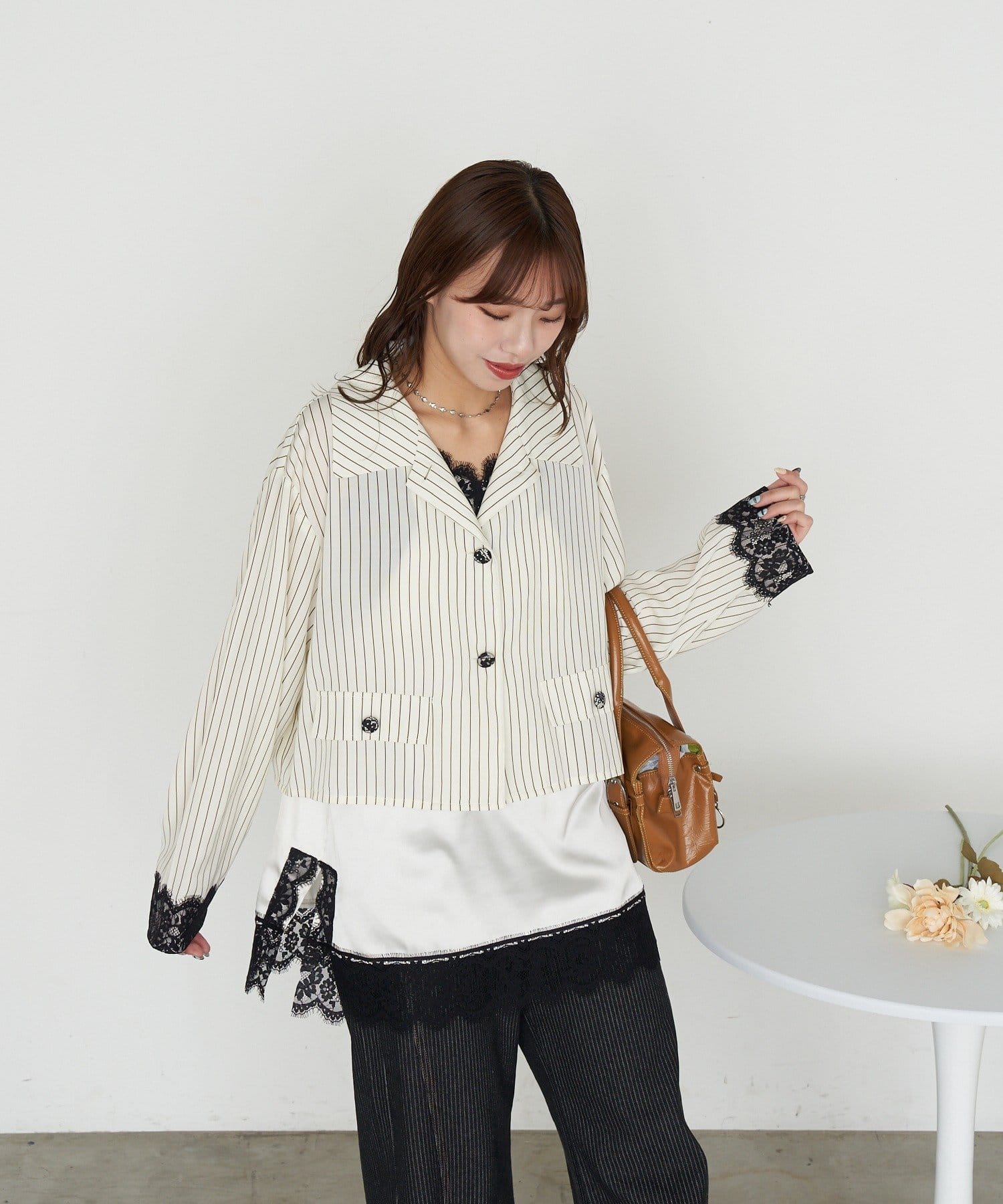 TOP > CIAOPANIC > レディース > トップス > シャツ/ブラウス(ボタン) > 【あみ(@a.m.6.43)企画】2点SETレースシャツジャケット×キャミワンピ