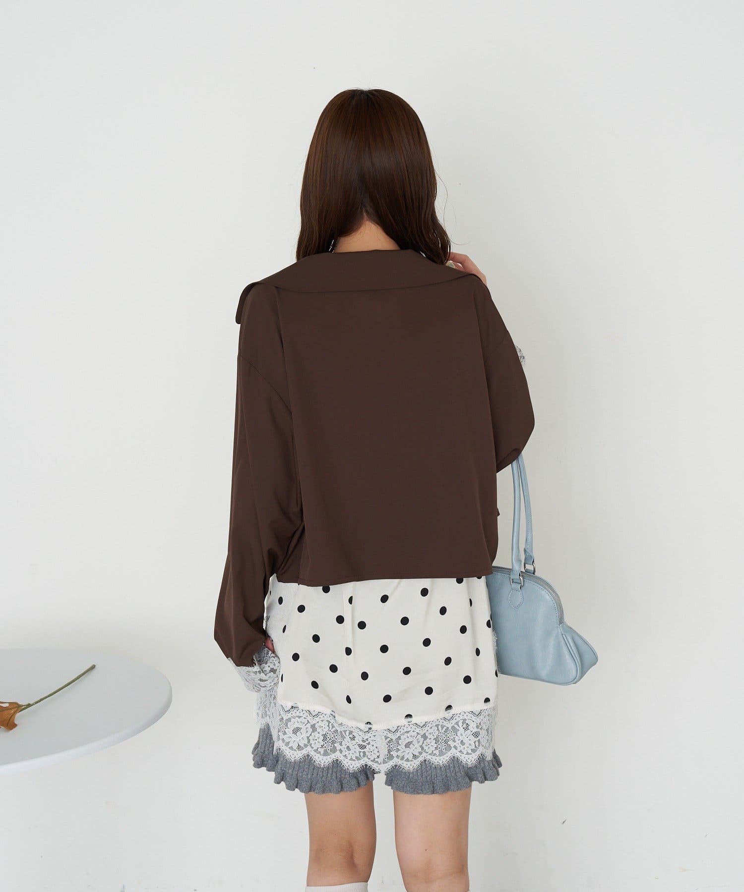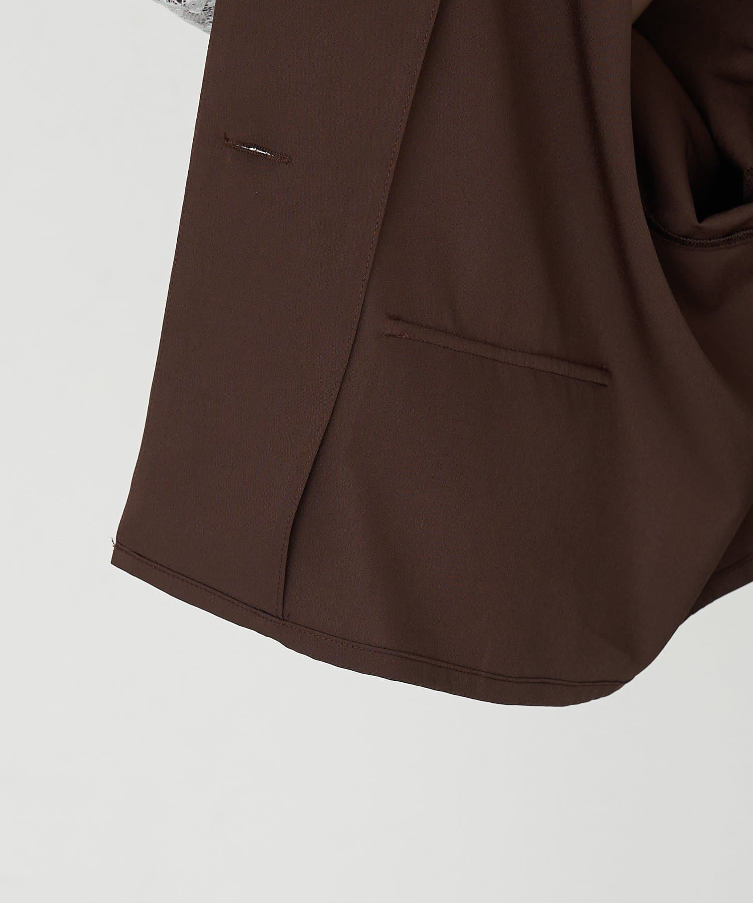 素材 【ジャケットブラウン】本体: ポリエステル 95%, ポリウレタン 5% レース部分: ナイロン 100%【ジャケットベージュ】 本体: ポリエステル 65%, レーヨン 35% レース部分: ナイロン 100%【ワンピース共通】本体: ポリエステル 100% レース部分: ナイロン 100%