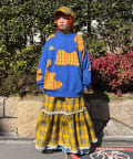 男女問わず、チェックパンツや柄スカートと合わせて、思いきりポップに着こなすのがおすすめ。