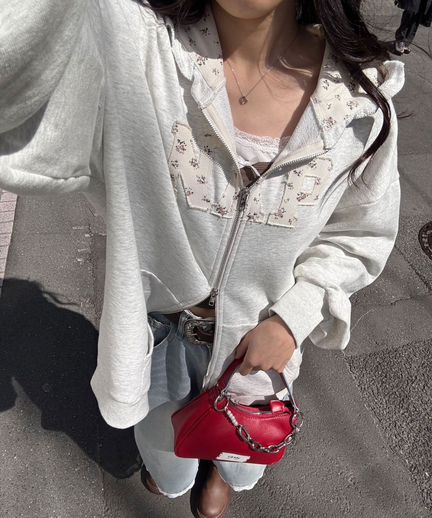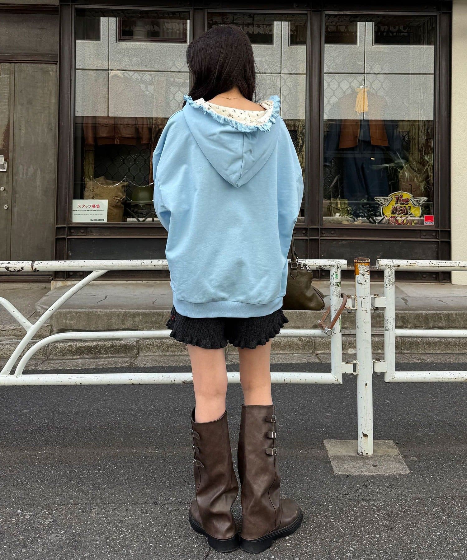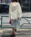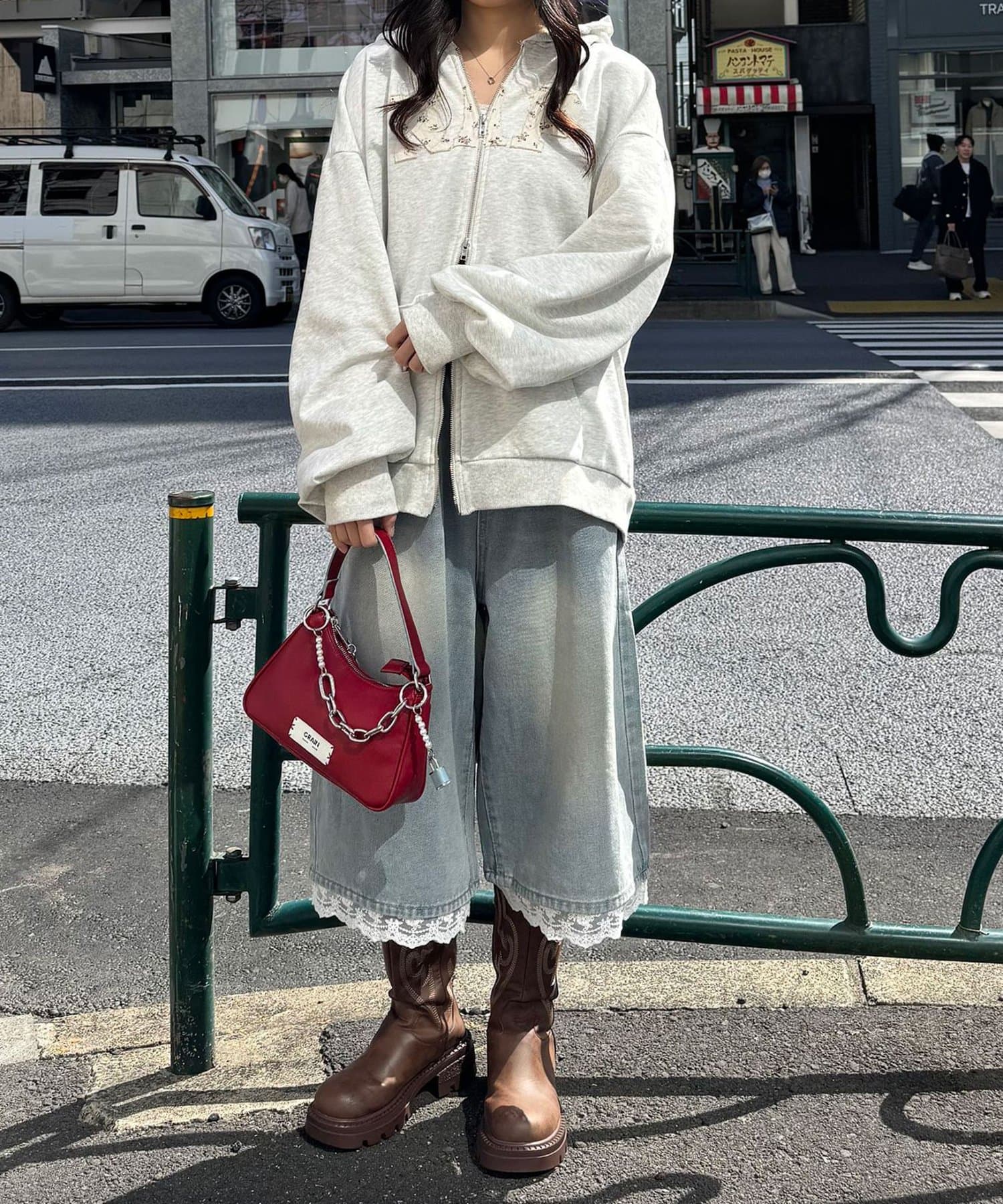 ワイドなデニムで思いきりルーズに崩すと、フードの甘さがいい感じに中和されて今っぽい雰囲気に。