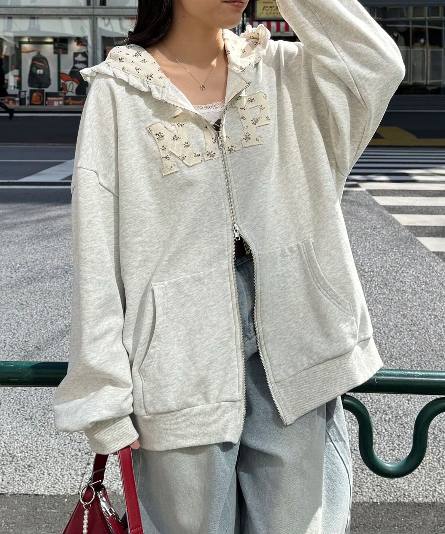 【neutral by ciaopanic】フラワーロゴフリルダブルジップパーカー