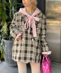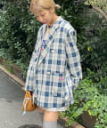 • CIAOPANIC(チャオパニック) 【HELLO.SANFRANCISCO/ハローサンフランシスコ】フラワー釦チェックオーバージャケット