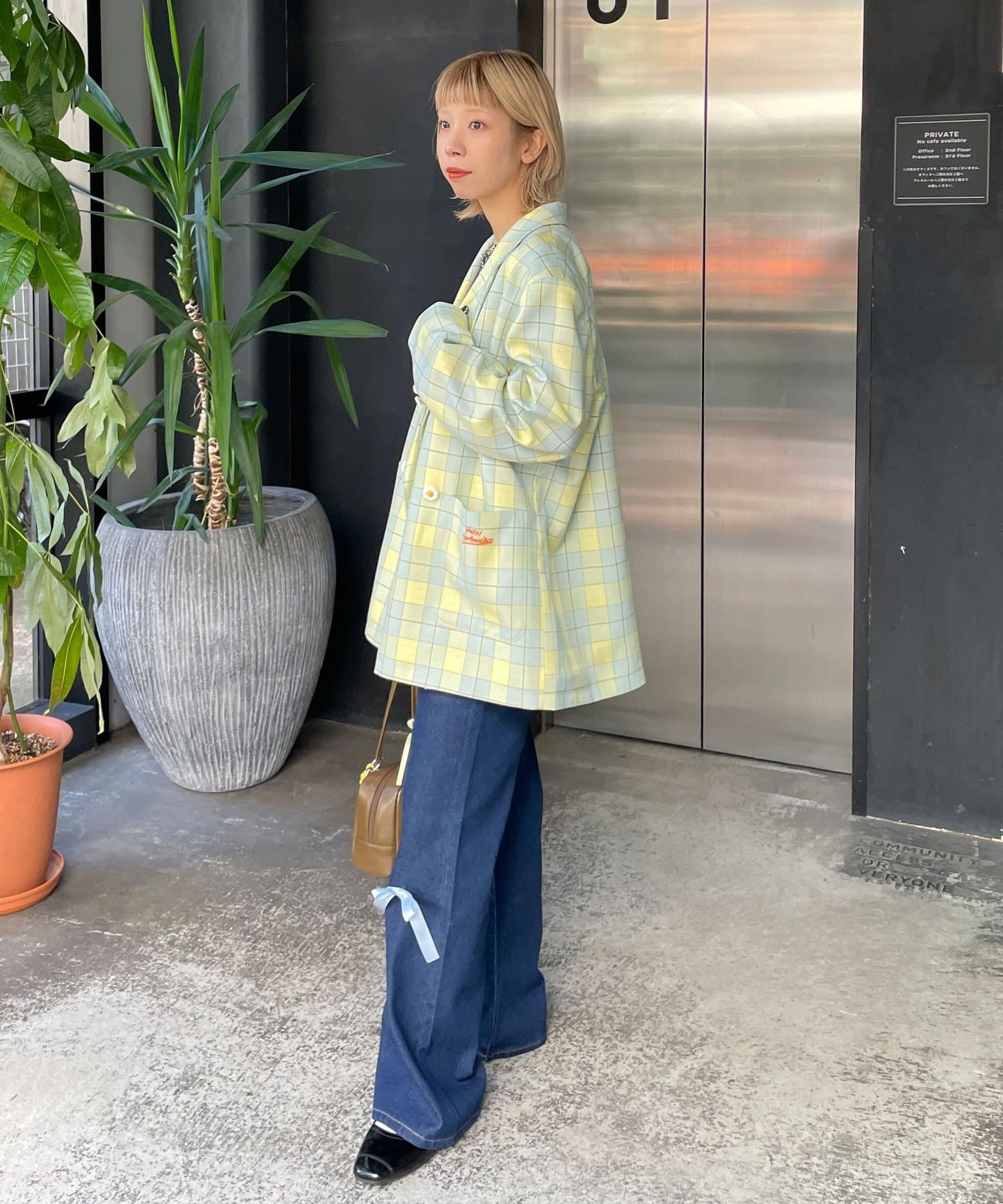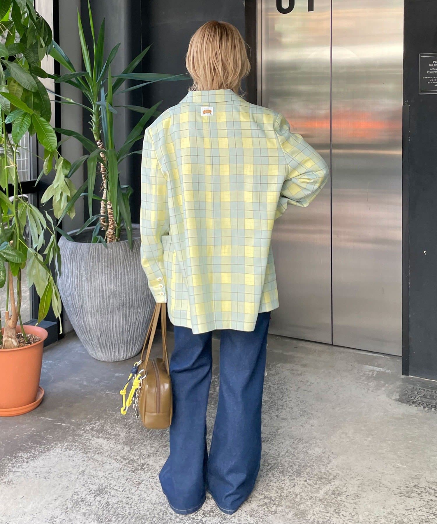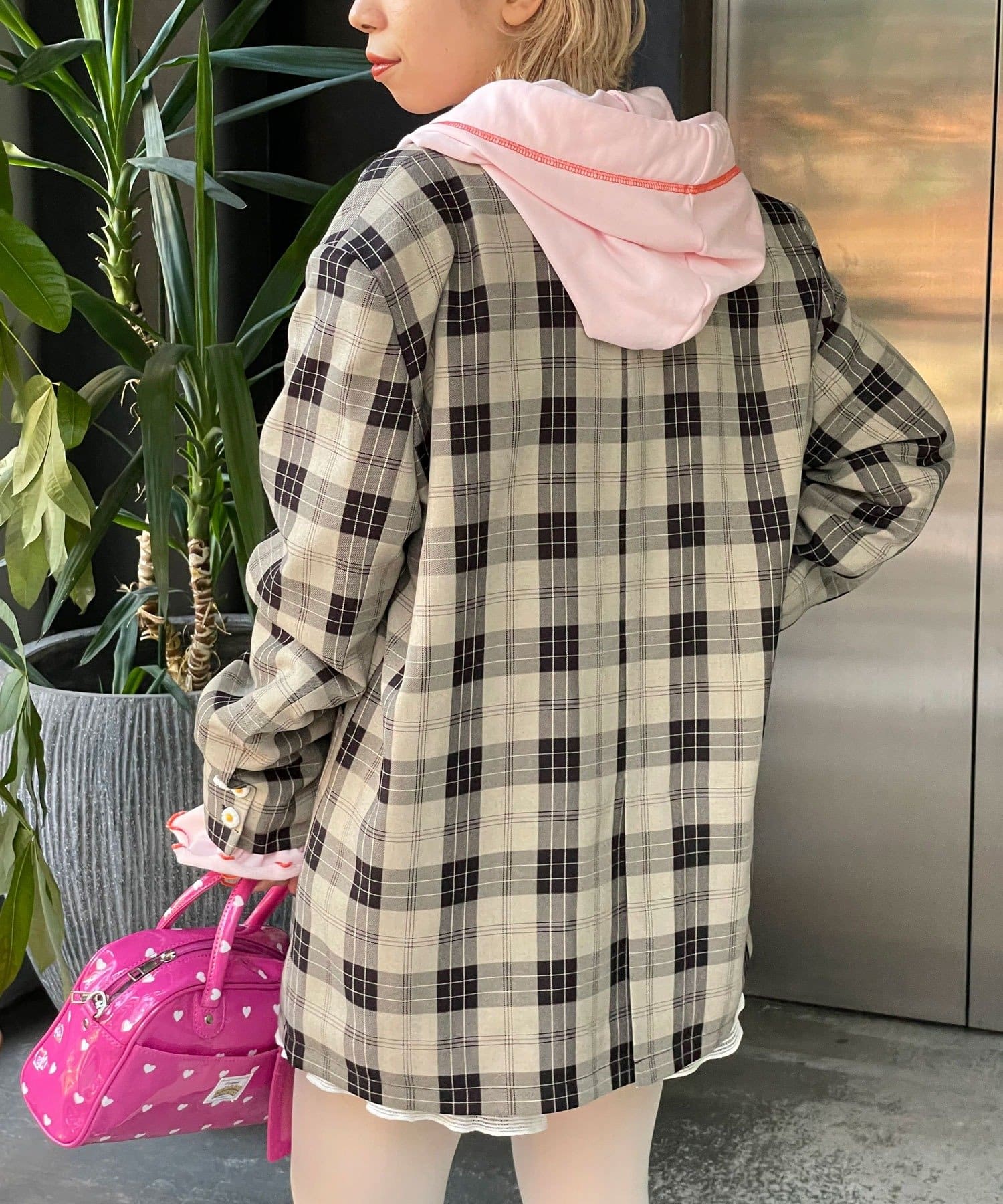 【HELLO.SANFRANCISCO/ハローサンフランシスコ】フラワー釦チェックオーバージャケット