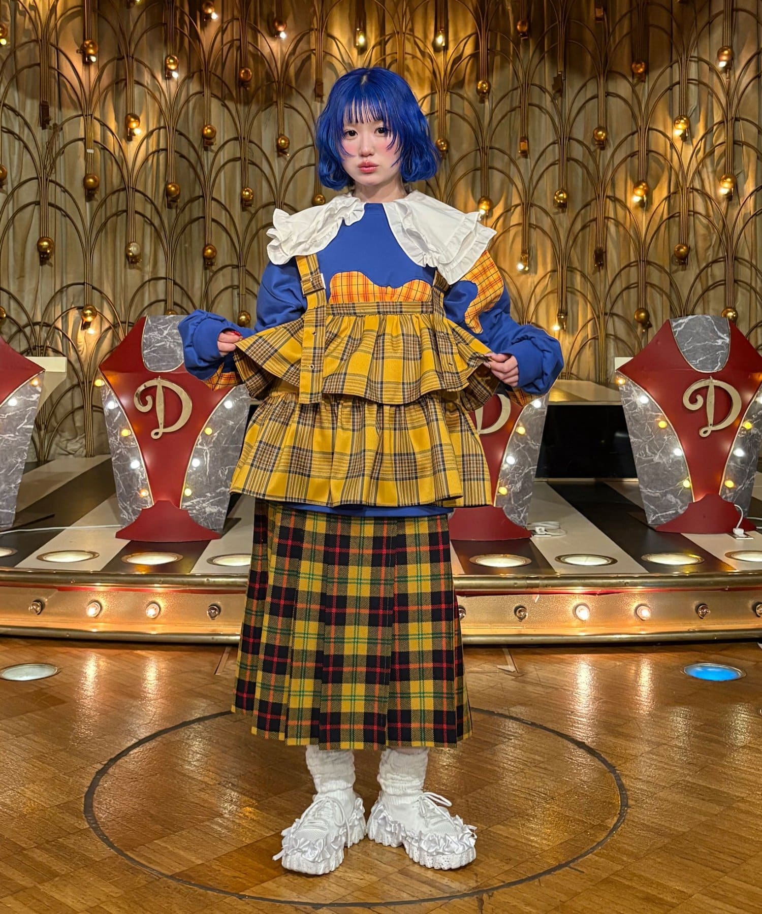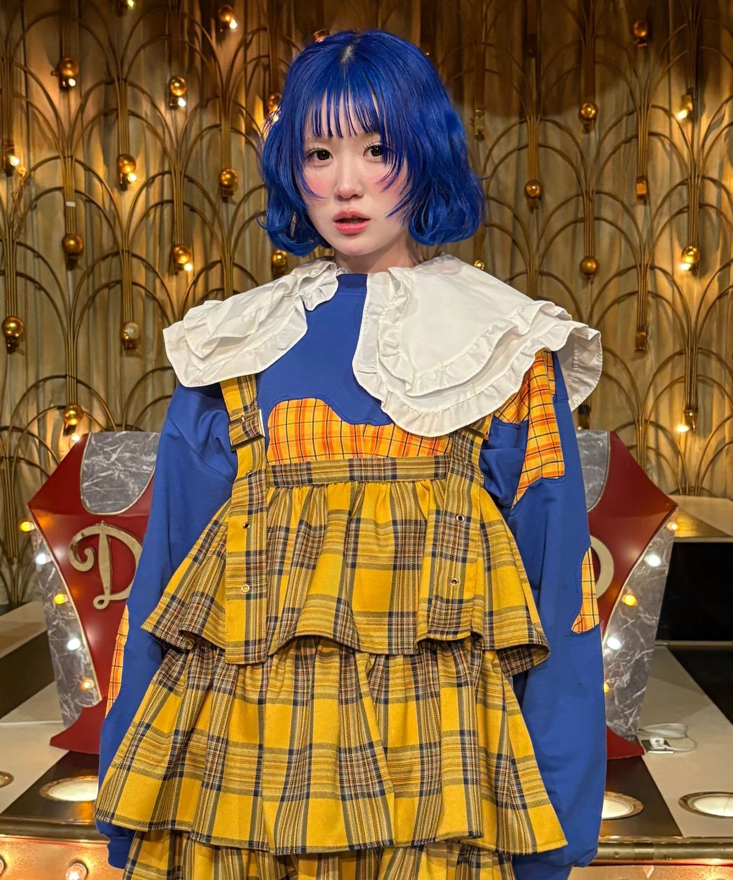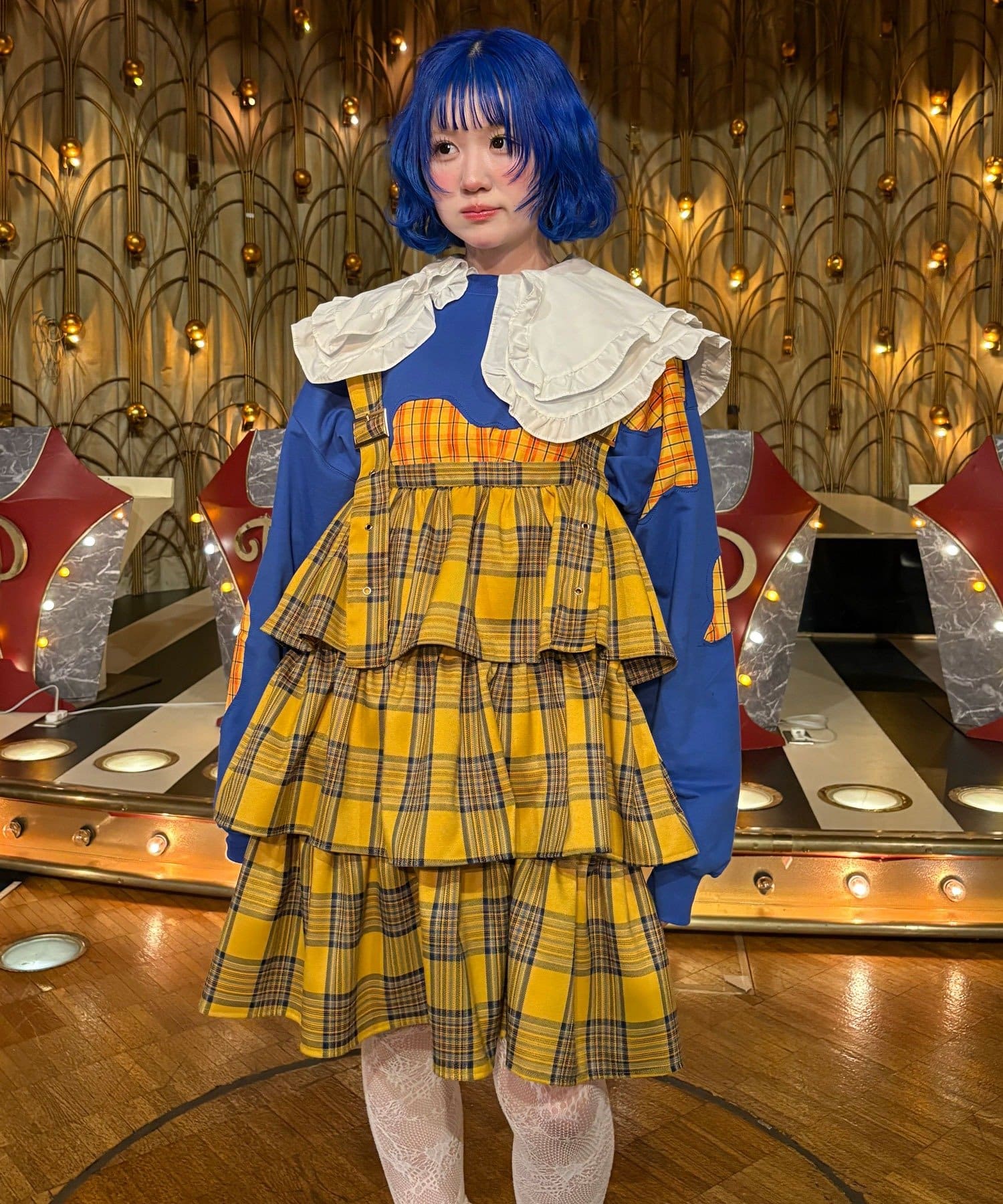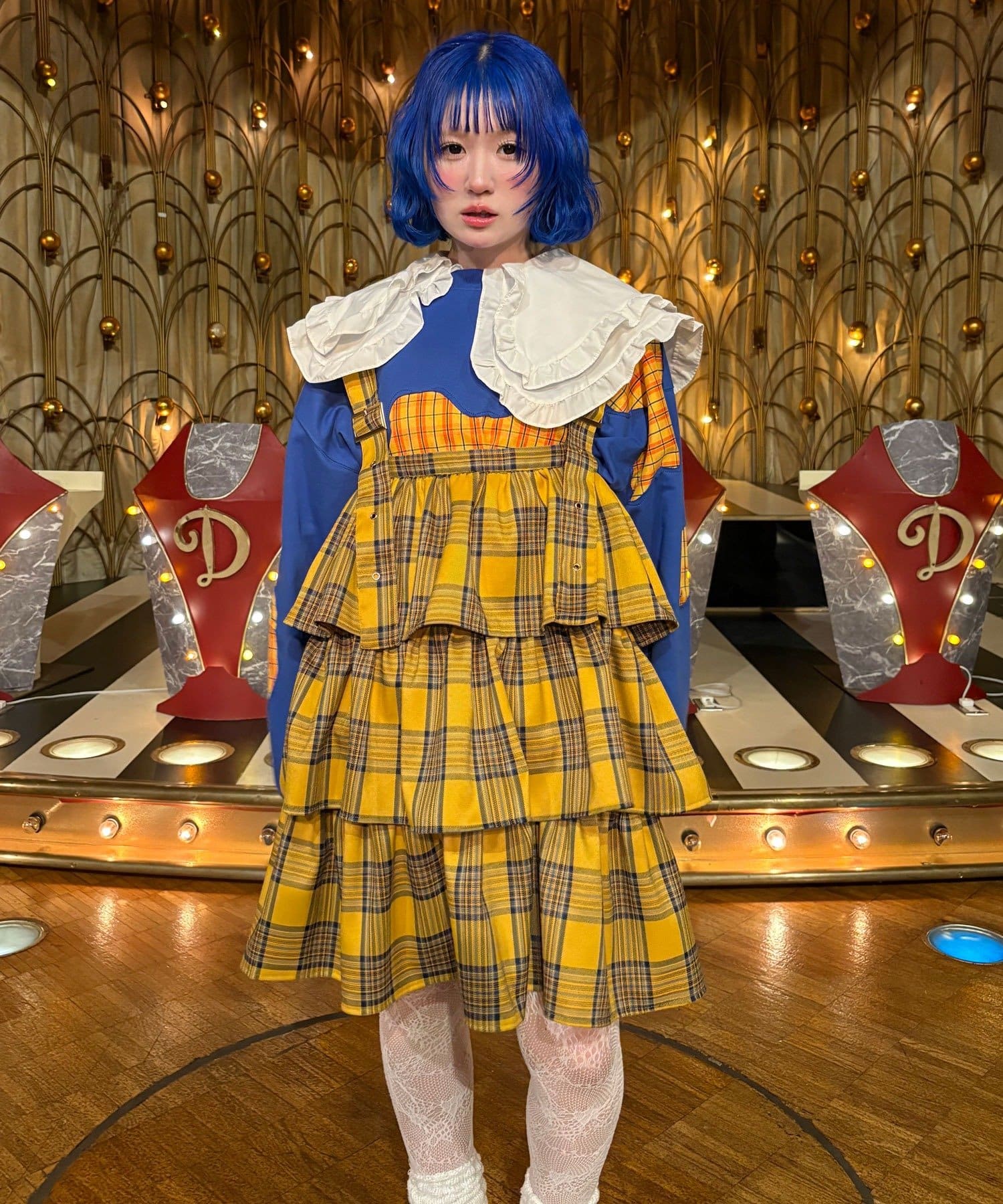 3段に重ねたティアードデザインが目を惹く、存在感抜群のチェックジャンパースカート。