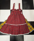 パッと目を引くチェック柄に、サイドの切り替えがアクセントになったエプロン風ワンピース。
