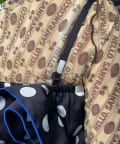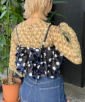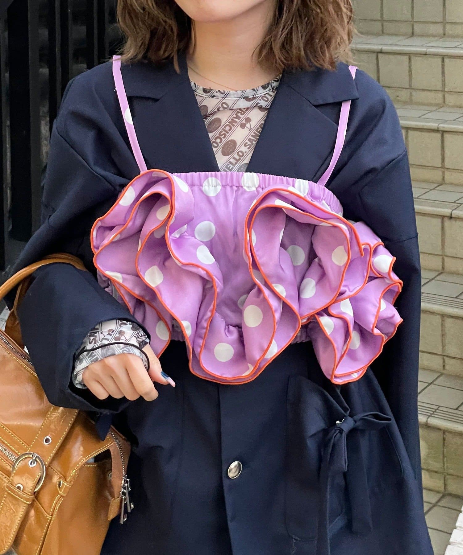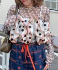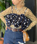 目を引くドット柄に、ボリュームたっぷりのフリルを重ねた主役級ビスチェ。