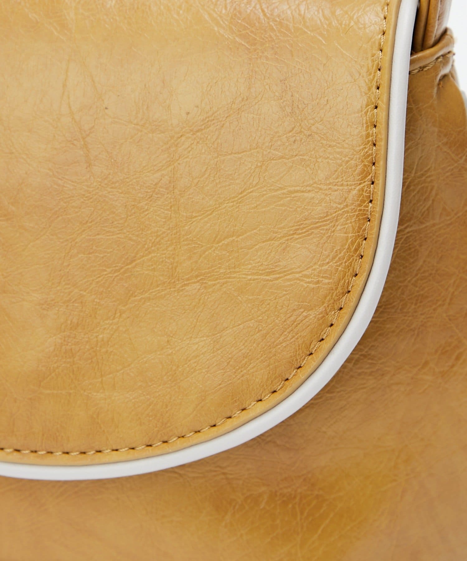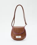 みのあるフォルムに、縁取りの配色ラインがアクセントになったショルダーバッグ。