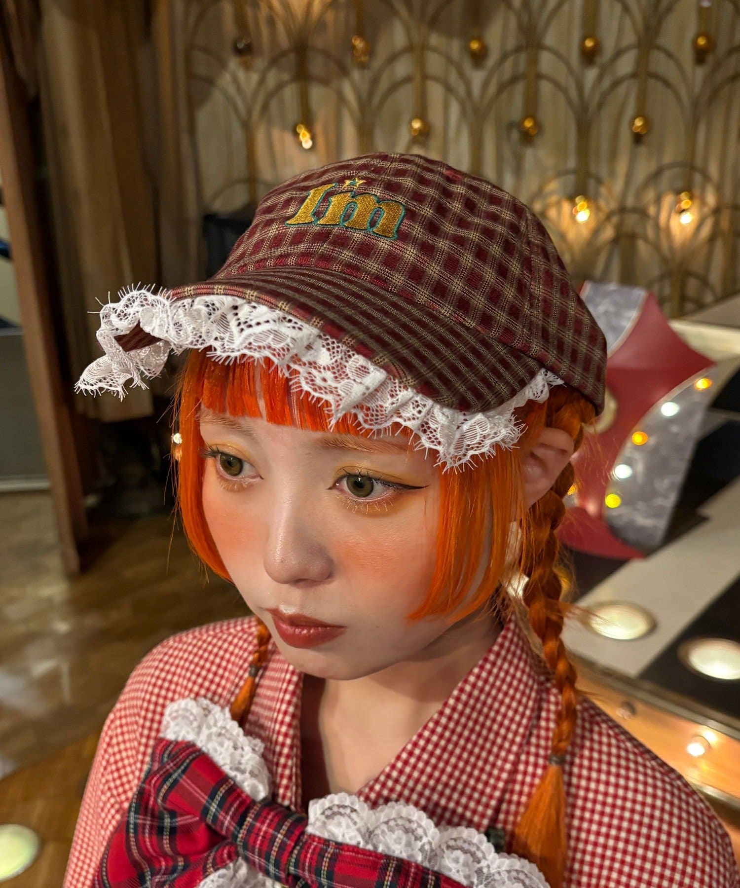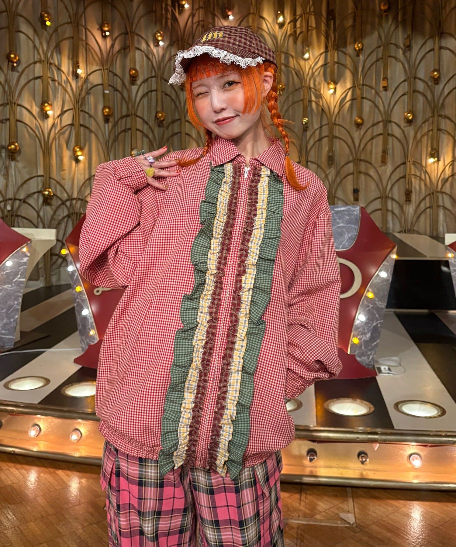 I’mらしい遊び心を詰め込んだ、チェック柄フリル刺繍キャップ。