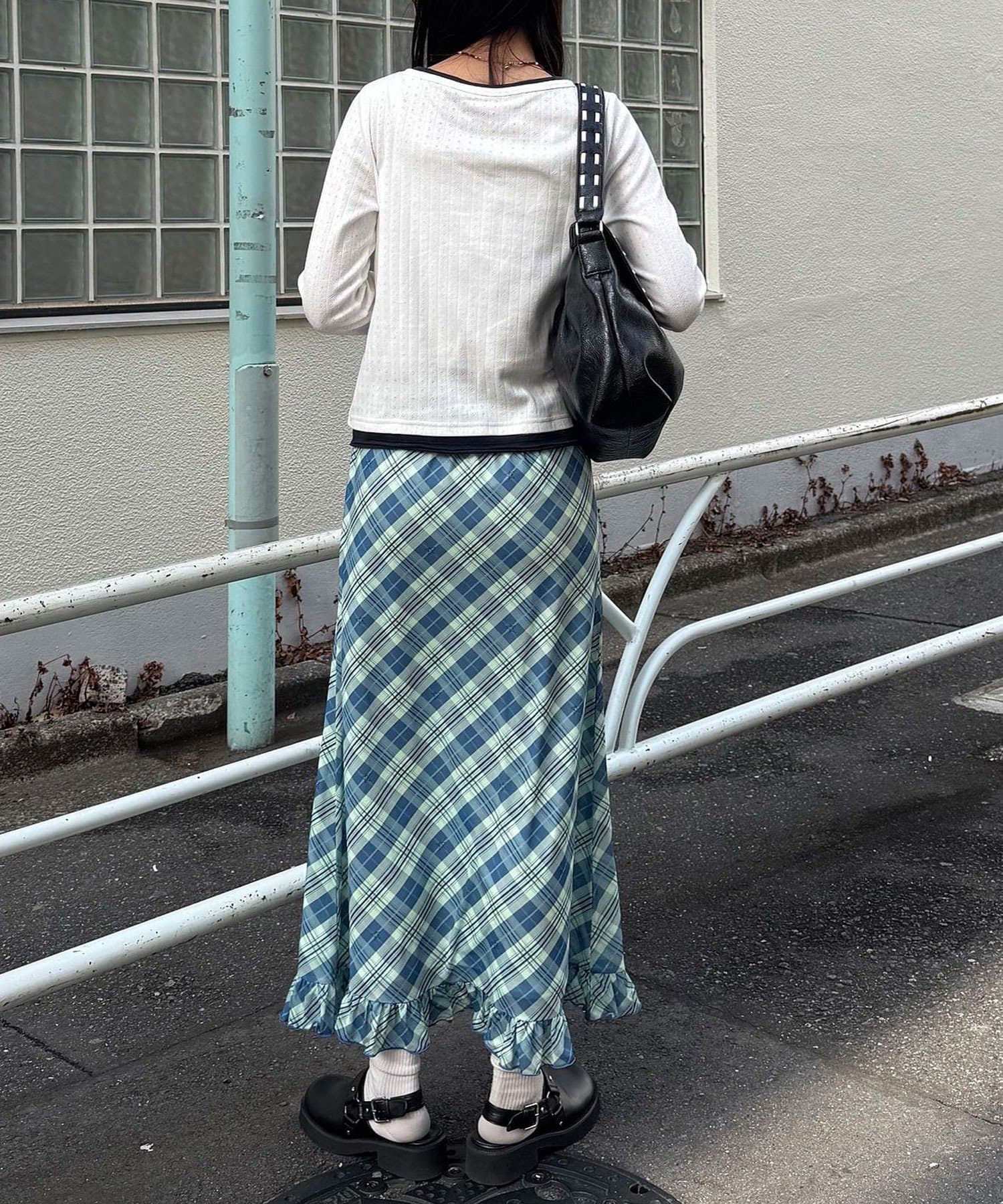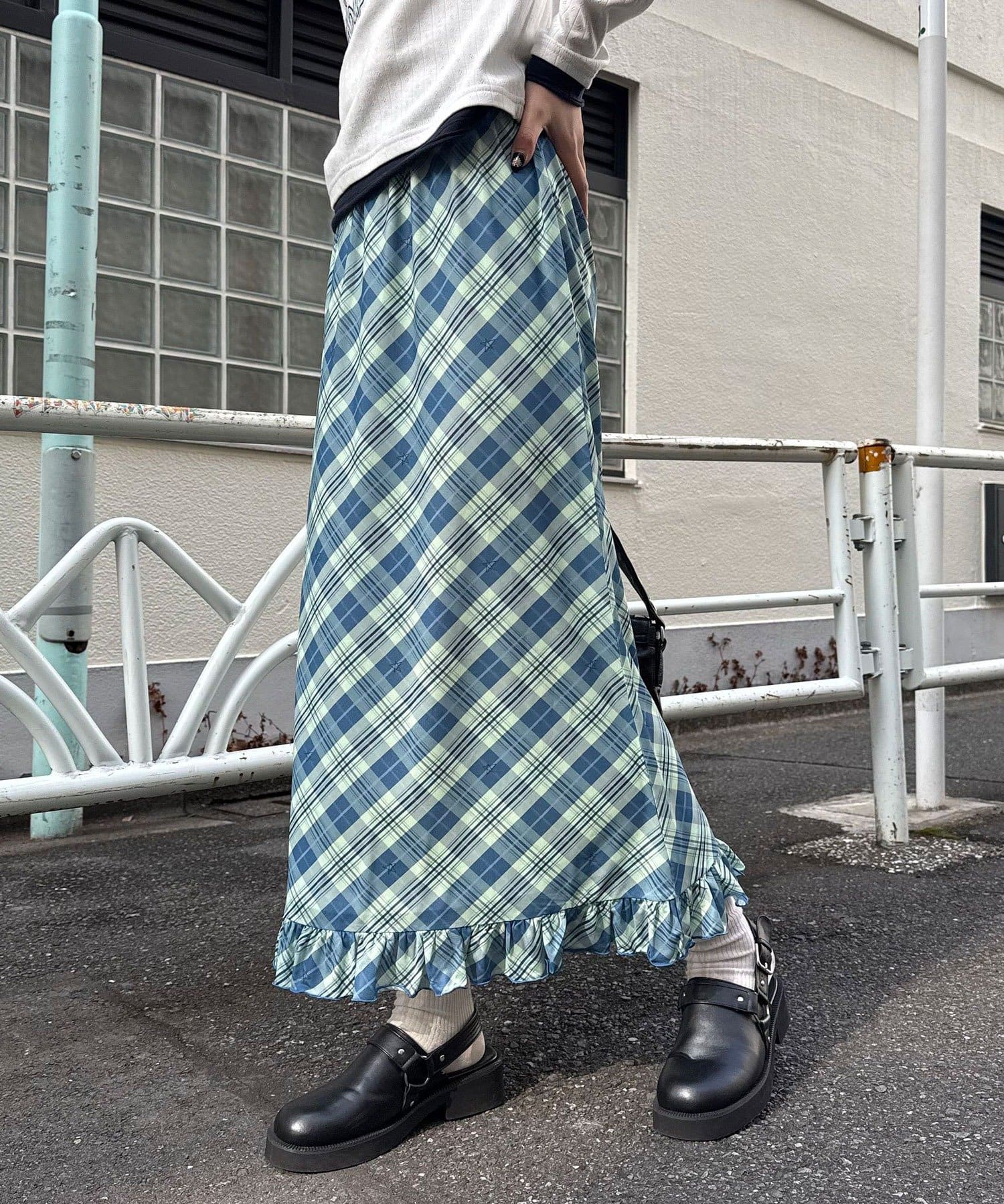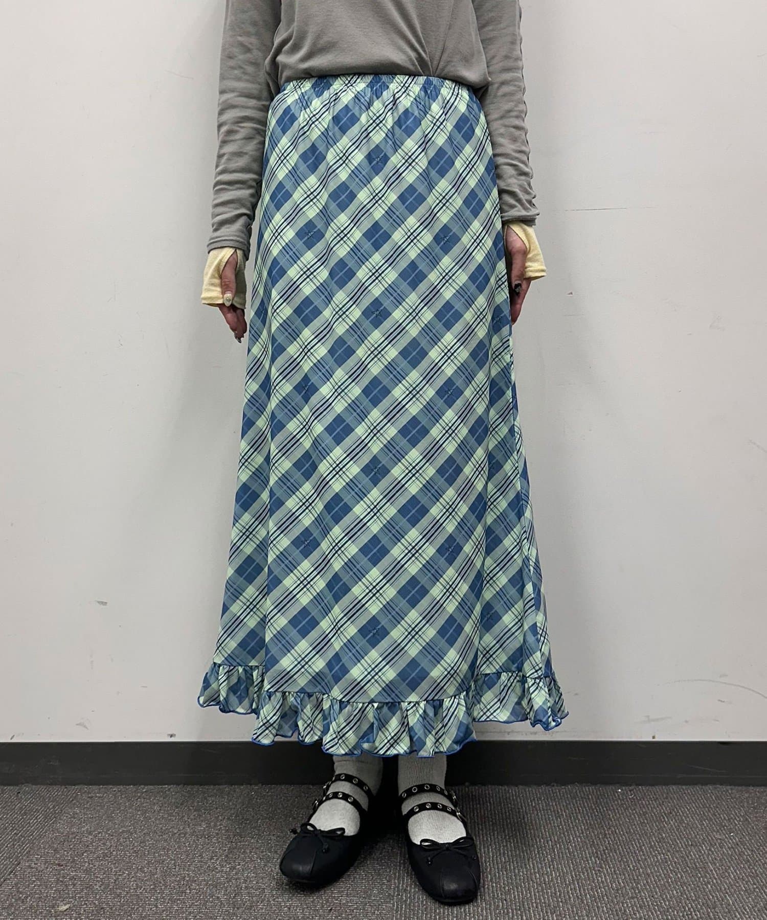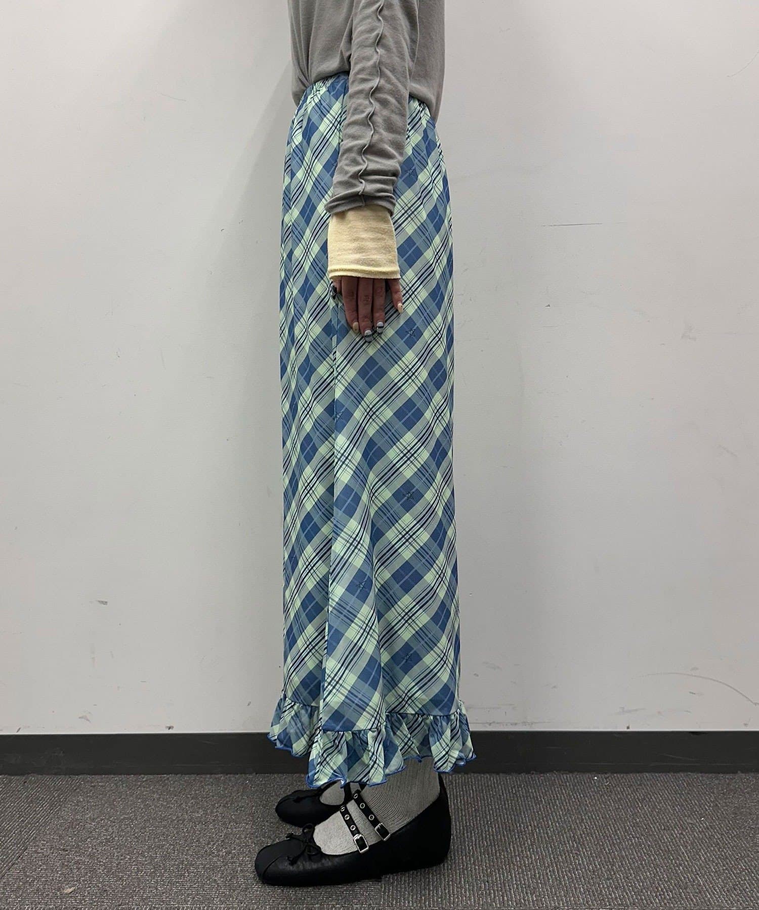 TOP > CIAOPANIC > レディース > スカート > スカート > バイヤスチェックシアーIライン裾フリルスカート