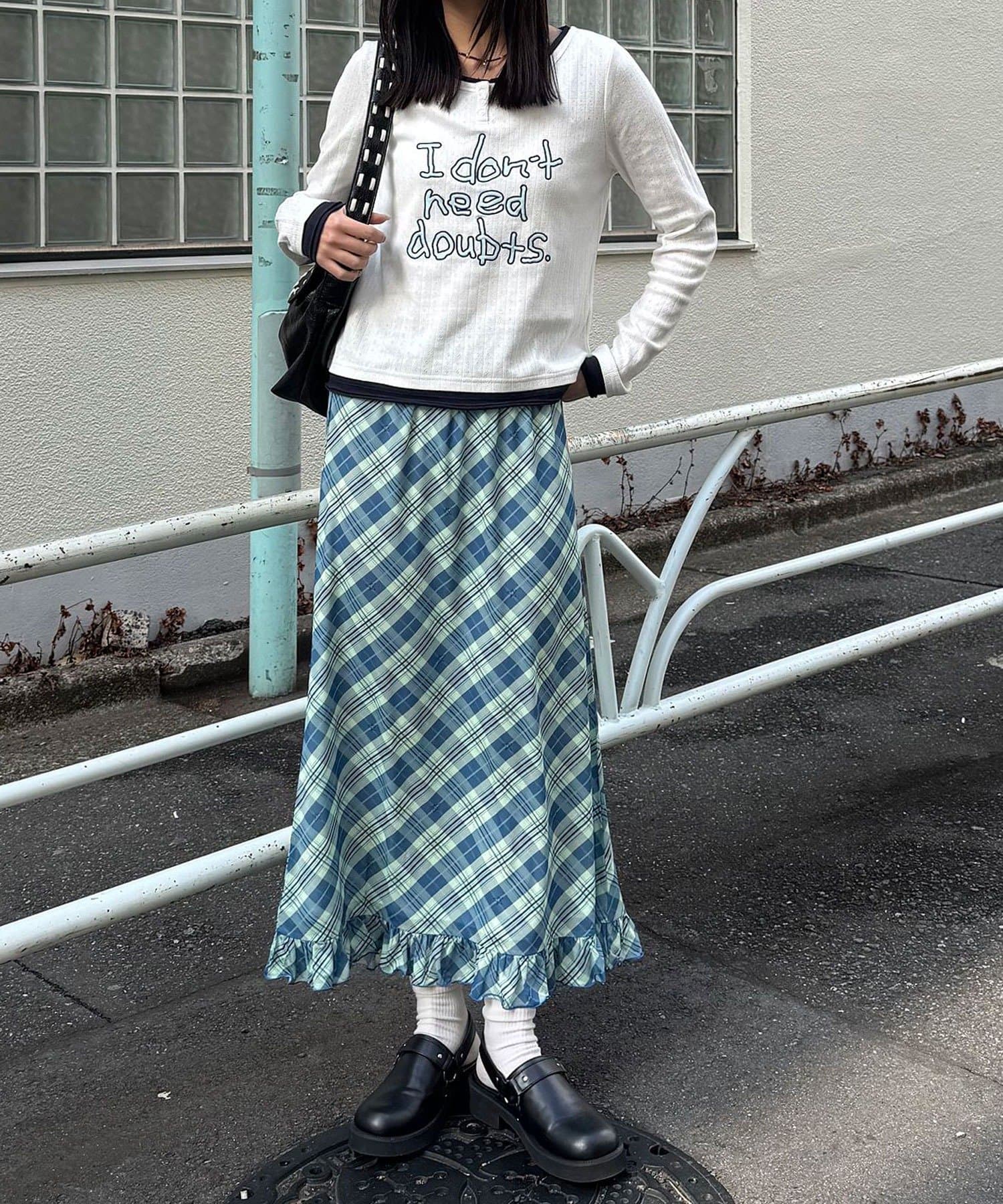 CIAOPANIC(チャオパニック) バイヤスチェックシアーIライン裾フリルスカート