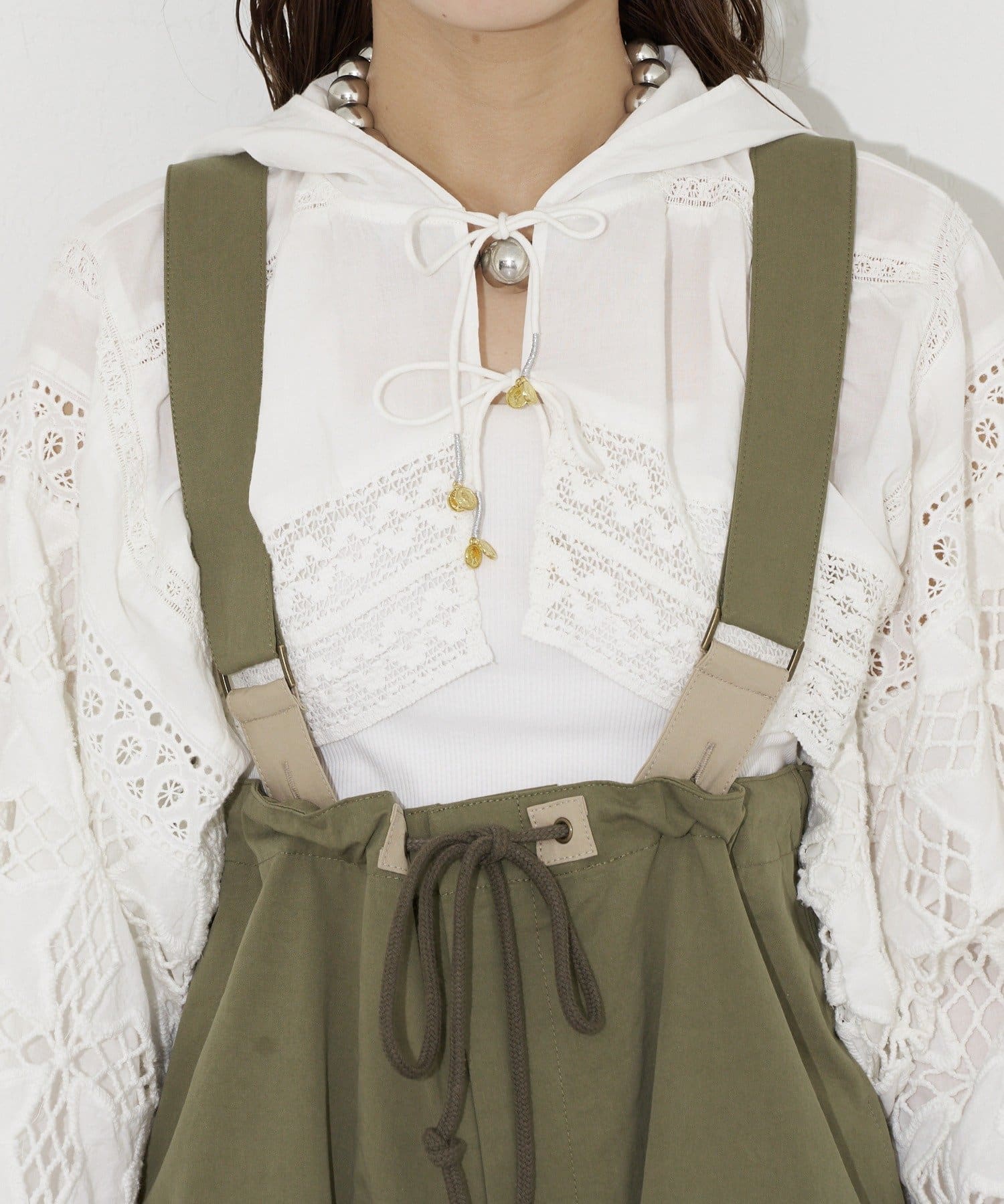 サスペンダーは長さ調節・取り外しが可能で、スタイリングの幅も広がります。